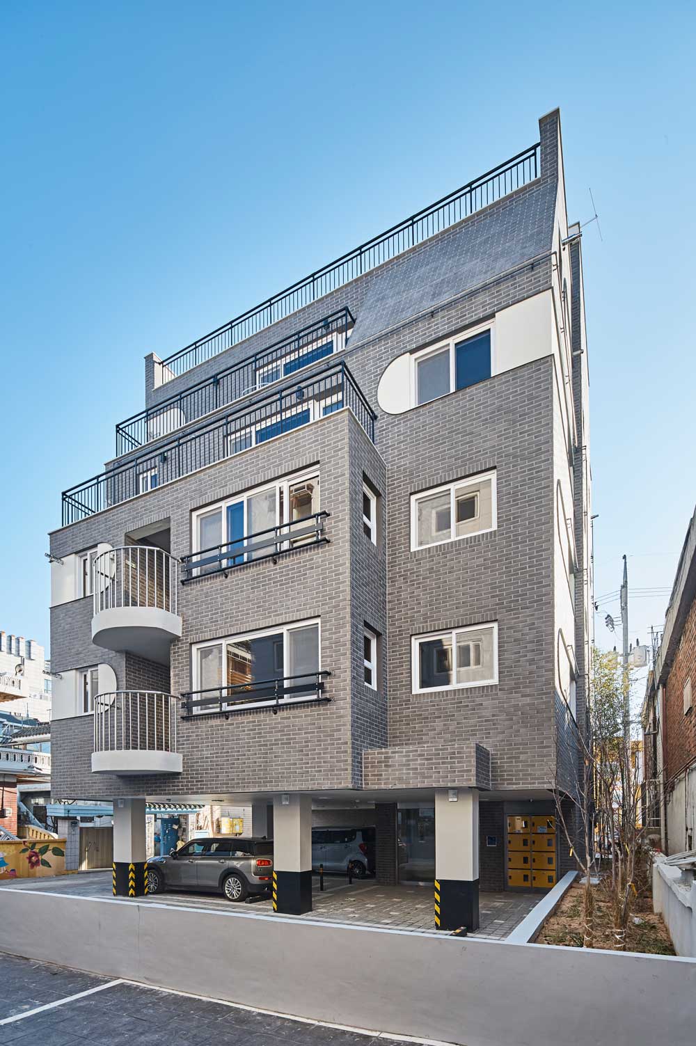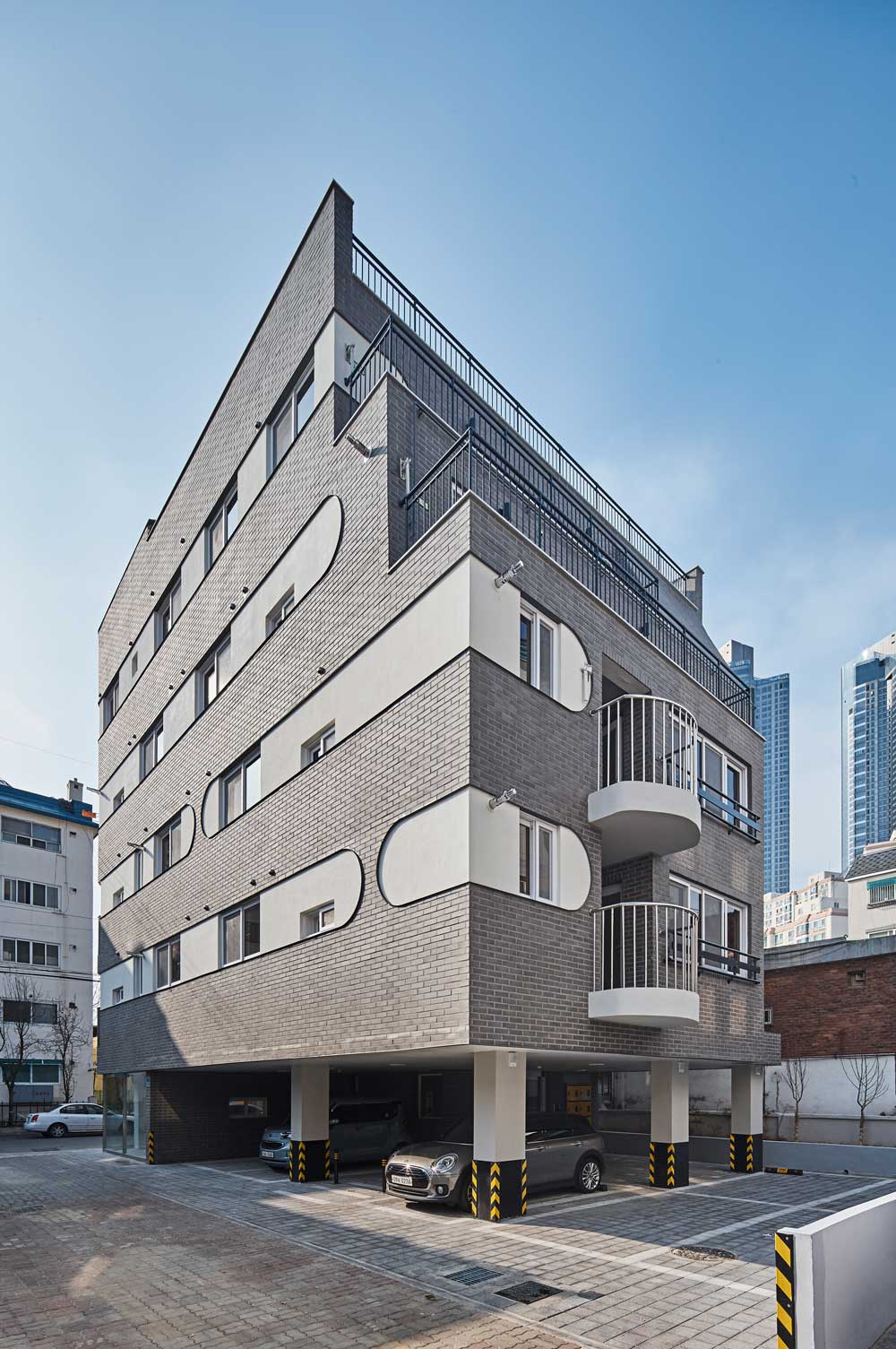 Although the priority is in profitability normally in multifamily housings in Seoul, the architect pursues the better neighbourhood by adding architectural flavors in designing.