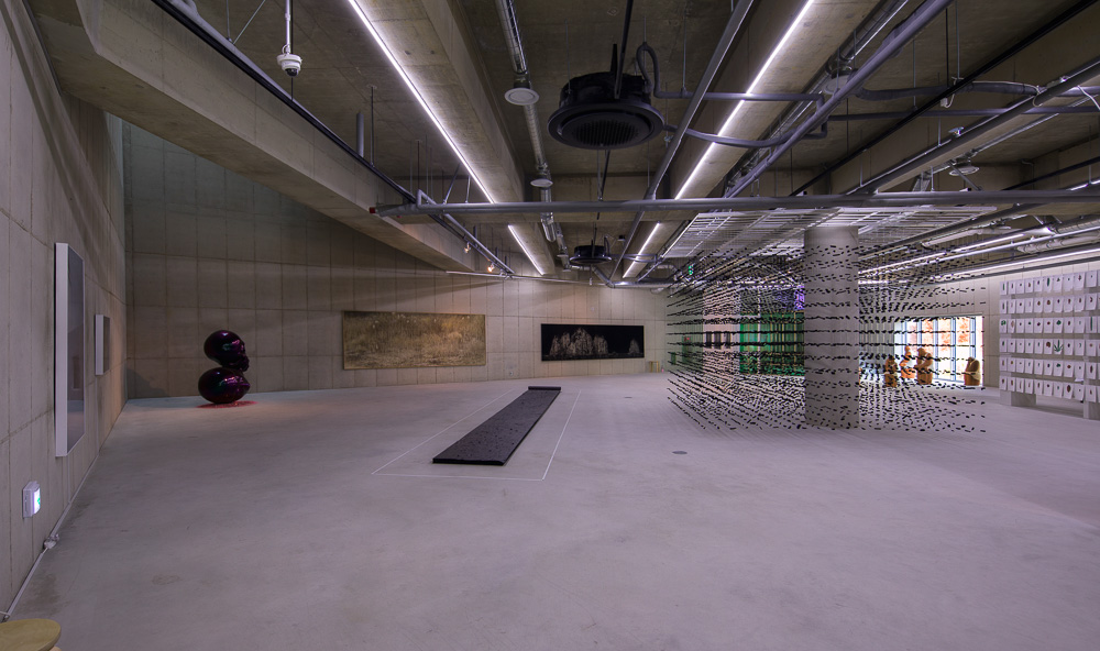 The columns, walls, floors and ceilings are finished with exposed concrete while the façade is composed of brick veneer system using recycled white brick. Resting on one circular column and three loadbearing walls, the vertically stacked exhibition halls enable museum curators to explore endless possibilities.