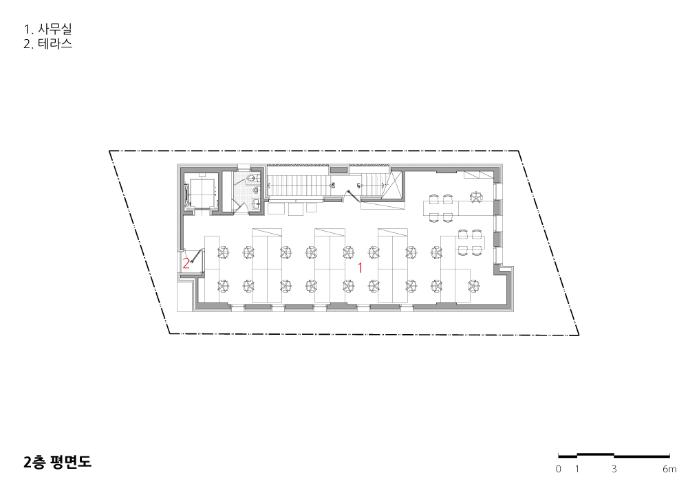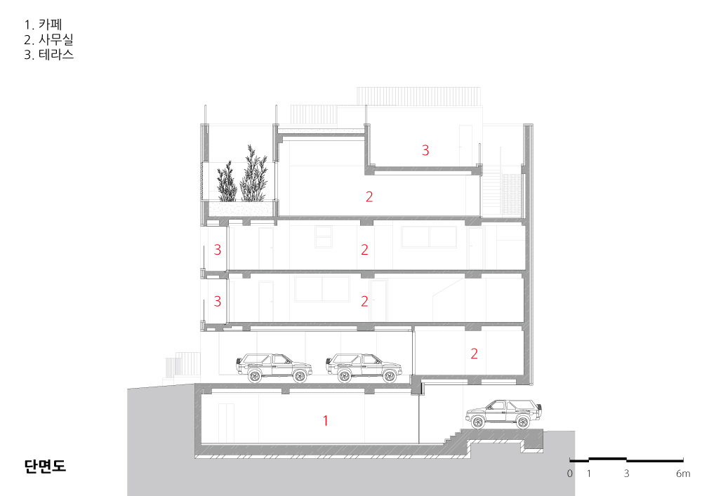 YKH headquarter Client | DONG HOON D.O.S. Supervisor | YKH Architects Construction | Dosi Construction Project team | Hong, Taesun(AIA) / Kim, Soyeon / Shin, Jaeho / Lee, Saeho / Lee, Jongmin / Bak, Yeongmuk / Kim, Yongki Location | 14-9, Dosan-daero 102-gil, Gangnam-gu, Seoul, Korea Program | Office Site area | 218.8㎡ Building area | 126.60㎡ Gross floor area | 556.26㎡ Building to land ratio | 57.86% Floor area ratio | 198.56% Building scope | B1F - 5F Structure | RC Exterior finishing | White antique brick Interior finishing | Cement mortar and water paint Design period | Feb. 2016 ~ Aug. 2016 Construction period | Sep. 2016 ~ Jun. 2017 Photograph | Yu, Jaechul / Lee, Jungkyu Structural engineer | Harmony Engineeering Mechanical engineer | Samyoung Engineering Electrical engineer | SMTEC Engineering Fire engineer | Naksaeng Fire Safety |