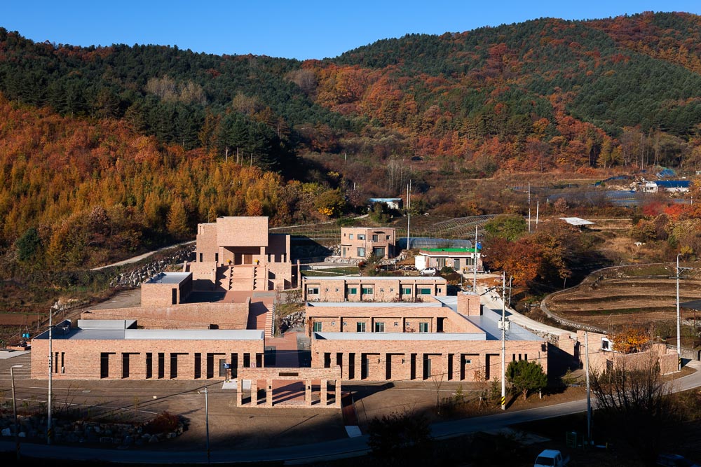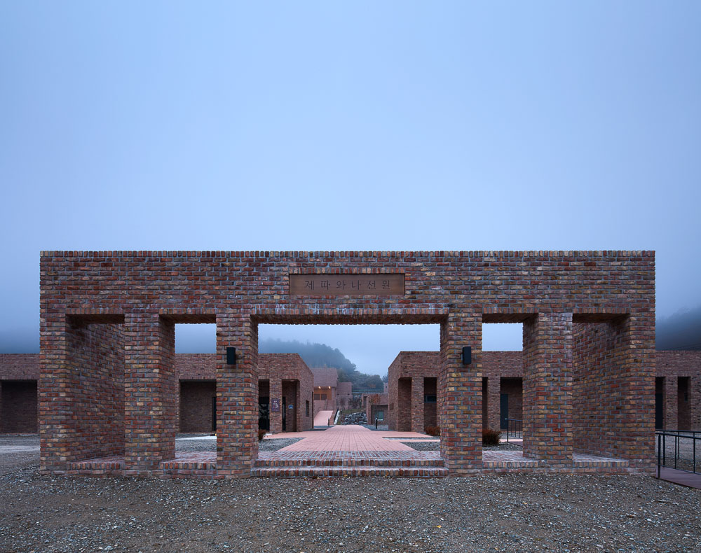 그것은 무척 오래된 것이면서 무척 혁신적인 접근이었다. 그런 점에서 기원정 사의 유적을 상징하는 벽돌은 아주 적합한 재료였다. 기존의 대부분의 사찰처 럼 한옥으로 짓지 않고 콘크리트 구조로 뼈대를 만들고 벽돌로 옷을 입혔다. 대 신 기존 가람(伽藍) 배치의 방식을 고려해 일주문을 지나 안으로 향하는 길은 직선으로 곧장 가지 않고 가면서 세 번 꺾어 들어가게 했고, 대지의 원래의 높낮 이를 이용해 세 개의 단을 조성하여 순서대로 종무소와 꾸띠, 요사채, 법당 등 위계에 맞게 건물을 올려놓았다.