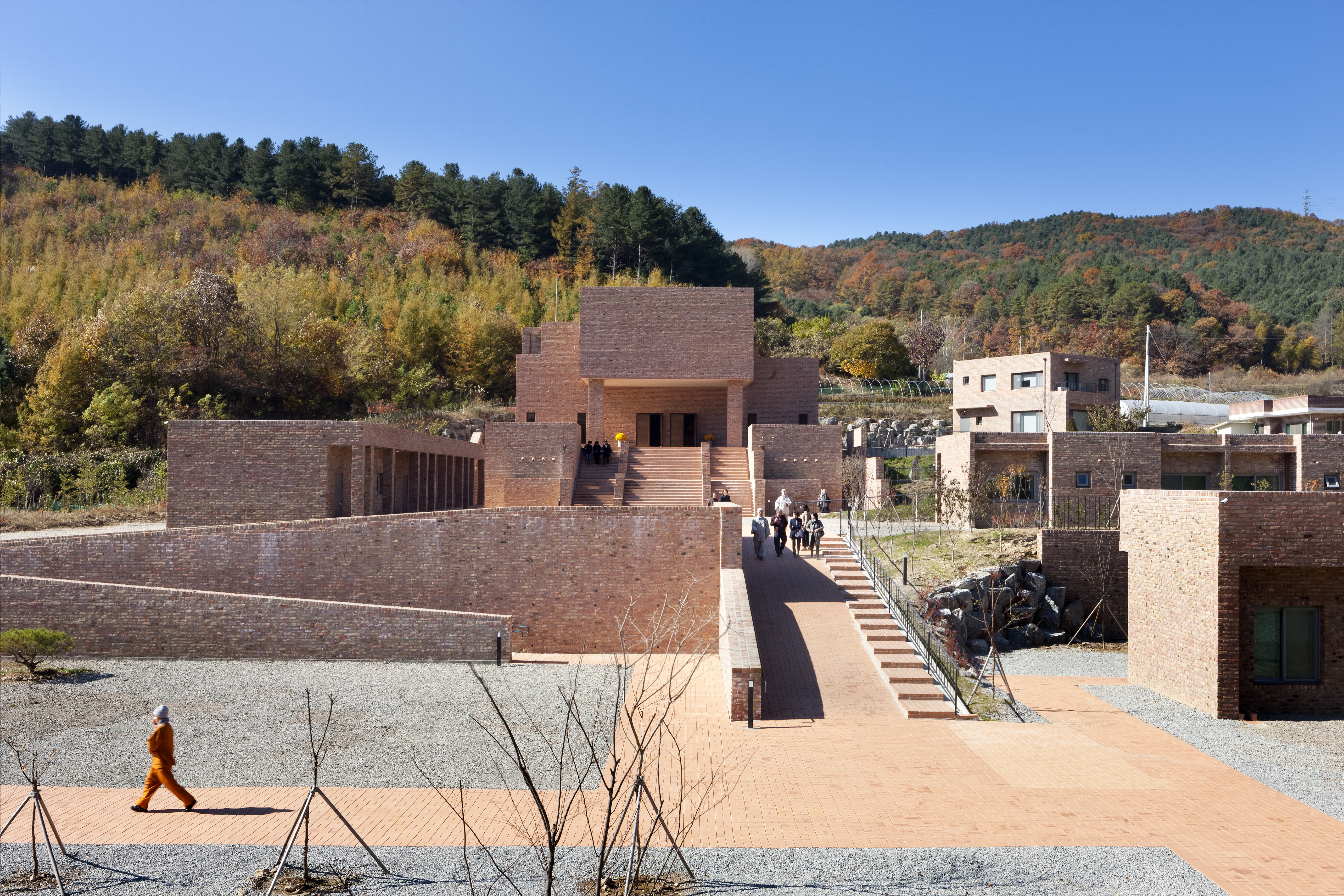 래서 가온건축의 형태언어들은 확정적이지 않다. 가온은 어느 장소의 시간들을 여기로 옮겨 와 심는다. 그게 그들의 건축이다. 그 시간들은 변하지 않는다. 사람 들이 자기가 태어난 곳의 언어를 평생 가져가듯이 가온건축의 시간도 그렇다. 시 간이 형태의 자리에 대신함으로써 그들의 건축은 조형언어로 대신할 수 없다. 가 온의 건축은 드라마투루기(dramaturgy)로 이루어져 있다. 간혹 이 드라마트루 기가 깨지는 경우가 있는데, 그런 경우는 여지없이 물리적 형태가 조형언어를 갖 게 되는 경우다. 사람들은 비로소 그 형태를 보고 말문을 트겠지만 내면의 고즈넉 한 시간들은 텅 비게 된다.