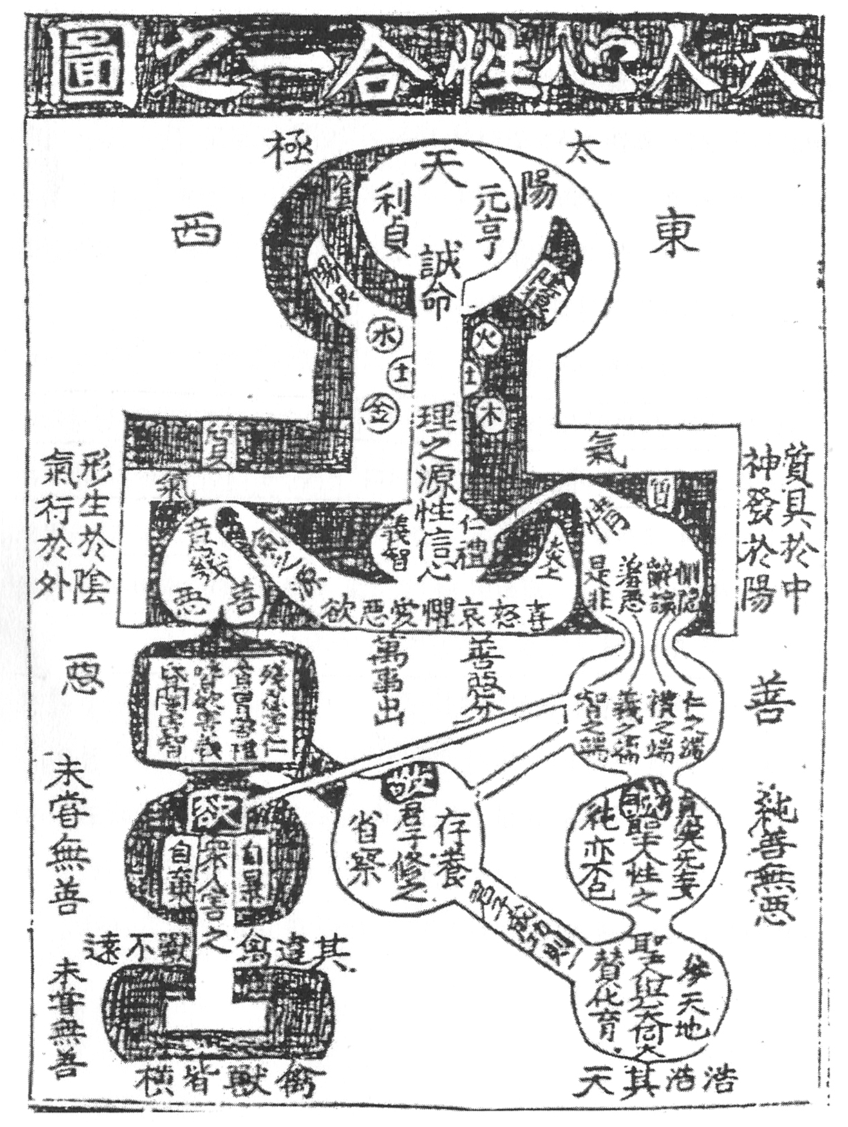 천인무간은, ‘지적(知的)・논리적’인 통합의 노력이 없이도 하늘과 사람은 자명 하게 원래 간극이 없이(無間) 하나(一元)가 되어 있다는 사상이다. ‘하늘[天]’과 ‘사람[人]’ 사이에 간극[間隙]이 없어졌다는 것은 무슨 뜻일까. 물리적 자연 속 에 인간적 삶이 자연스레 흡수되어 있다는 것이다. 중국의 ‘천인합일(天人合一)’ 사상에는 하늘과 사람이 합일되기 위해서는 ‘공부’라는 ‘지적・논리적 긴장과 노 력’이 동반된다. 합일이란, 마치 ‘오행(五行)’이 ‘토(土)’(中原, 中華, 黃色)를 중 심으로 ‘목(木)’(東-夷-春-靑色), ‘화(火)’(南-蠻-夏-赤色), ‘금(金)’(西-戎秋-白色), ‘수(水)’(北-狄-冬-黑色)의 각 변방-오랑캐를 통합하는 것처럼, 중 국과 그 주변을 통합하려는 일종의 사상 ‘공정(工程)’이다. 그것이 학술적으로는 격물치지와 같은 공부와 내면적 수행을 통해서 이루어진다. 여기엔 당연히 이론 적・원리적・논리적 통합의 의지와 노력이 수반된다. 그런데 천인무간론은 그러한 긴장감이 사라져버리고 하늘이 사람과 자연스레 다이렉트로 연결됨으로써, 간극 을 말소시킨다.