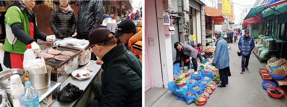 오일장이 열리는 모란시장은 180도 그 모습이 변했는데, 주차장으로 쓰이던 공간 은 이른 아침부터 장사 자리를 잡는 상인들과 가격흥정을 하는 사람들의 목소리로 가득했고 맞은편 고소한 냄새를 따라 시장의 입구에 들어서 기름골목에 다다르게 되면 깨를 볶는 사람, 볶은 깨를 짜내는 사람, 짜낸 기름을 파는 사람 등 바쁘게 움 직이고 있는 모습들도 볼 수 있었다. 또한 그 안에서 서로를 부르는 호칭으로 그들 이 가족단위로 구성되어 장사를 하고 있다는 점도 알 수 있었는데, 그러한 모습은 모란시장과 함께 걸어온 기름골목만의 정겨운 분위기를 만들어 주는 듯했다.