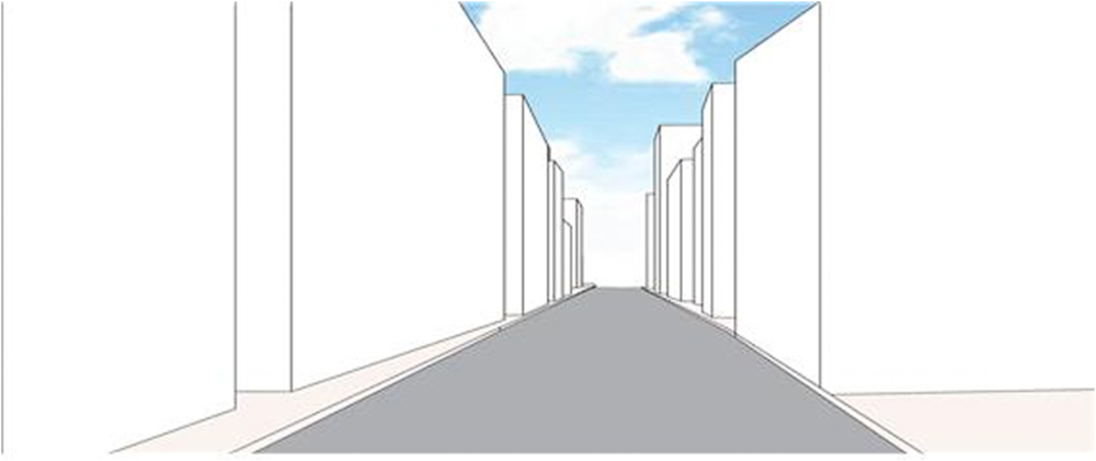 첫 번째는 보행자 우선 대칭도로의 형태로 시장들 중 대부분의 시장에서 볼 수 있는 형태이며, 여기서 도로 폭이 충분한 경우에는 도로 중앙부에서도 차량의 통 행이 가능하다.