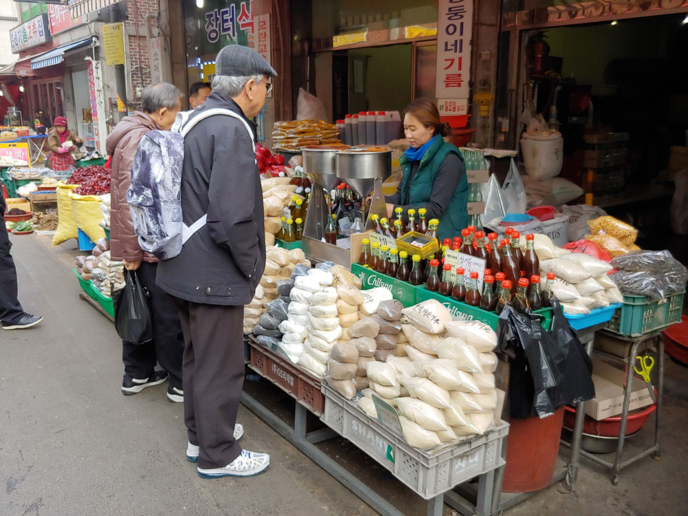 어느 기름집을 들어가도 기름이 만들어지는 과정을 볼 수 있고 기다리는 동안 상 인들과 소소한 대화가 이루어질 수도 있다. 어쩌면 우리는 기름골목에서 발걸음 을 붙잡는 고소한 기름뿐만 아니라 정겨운 분위기까지 얻어가는 것은 아닐까?