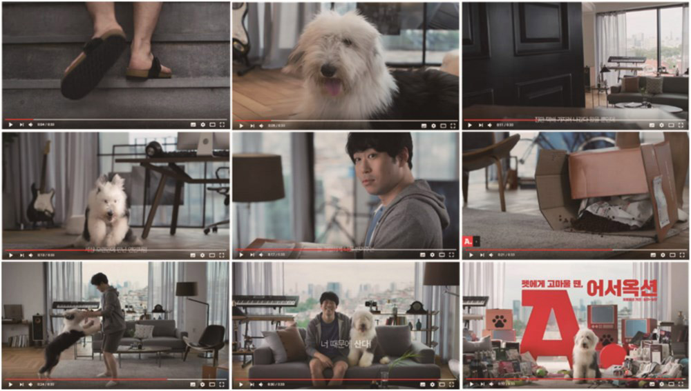 개는 내가 아무리 밤늦게 현관 문을 열어도 기다렸다는 듯이 제일 먼저 달려 나와 반겨준다. 이른 새벽 집을 나설 때는 아쉬워하며 바짓가랑이를 물고 늘어진다. 세상에 나 밖에 없는 것처럼 나에게 올인한다. 내가 키우는 개는 내가 세상에서 가장 소중한 사람이 되는 경험을 선물한다. 이러한 반려견의 조건 없는 충성과 애정을 잘 보여주는 광고 한 편이 있다. 2017년 8월에 방영된 옥션의 TVCM이 바로 그것이다. 겨우 문 앞에 택배를 가지러 갔다 온 주인이, 마치 십 년은 헤어졌던 연인이라도 되는 것처럼 미친 듯이 달려와 안긴다. 늘어나고 있는 1인 가구의 변화된 라이프 스타일을 엿볼 수 있는 영상이기도 하다.