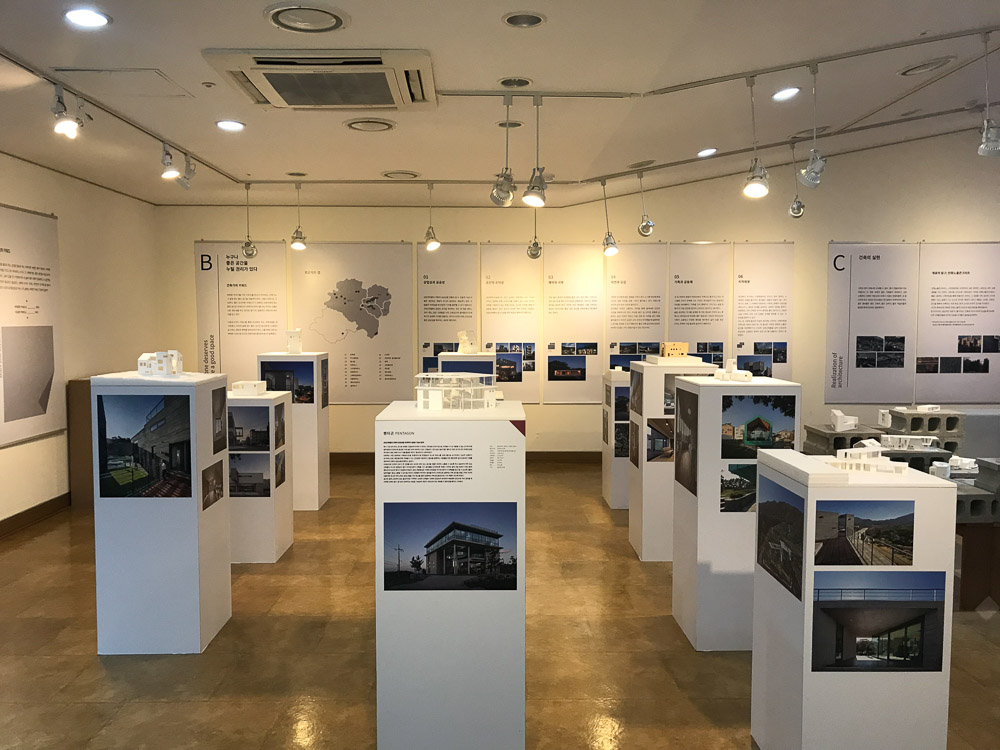 얼마 전 울산이라는 지역에서 건축 콘텐츠를 가지고 처음으로 개인 건축 전시회 를 열었다. 그 간의 작업들을 정리하면서 준비한 결과물로 지역의 건축이 가진 가능성과 좋은 공간에서 상대적으로 소외되어 있는 울산 시민들에게 좋은 건축 과 공간이 어떤 의미를 갖고 있으며, 우리의 삶에 어떤 영향을 주는 지에 대하여 같이 소통하고자 마련한 자리였다.