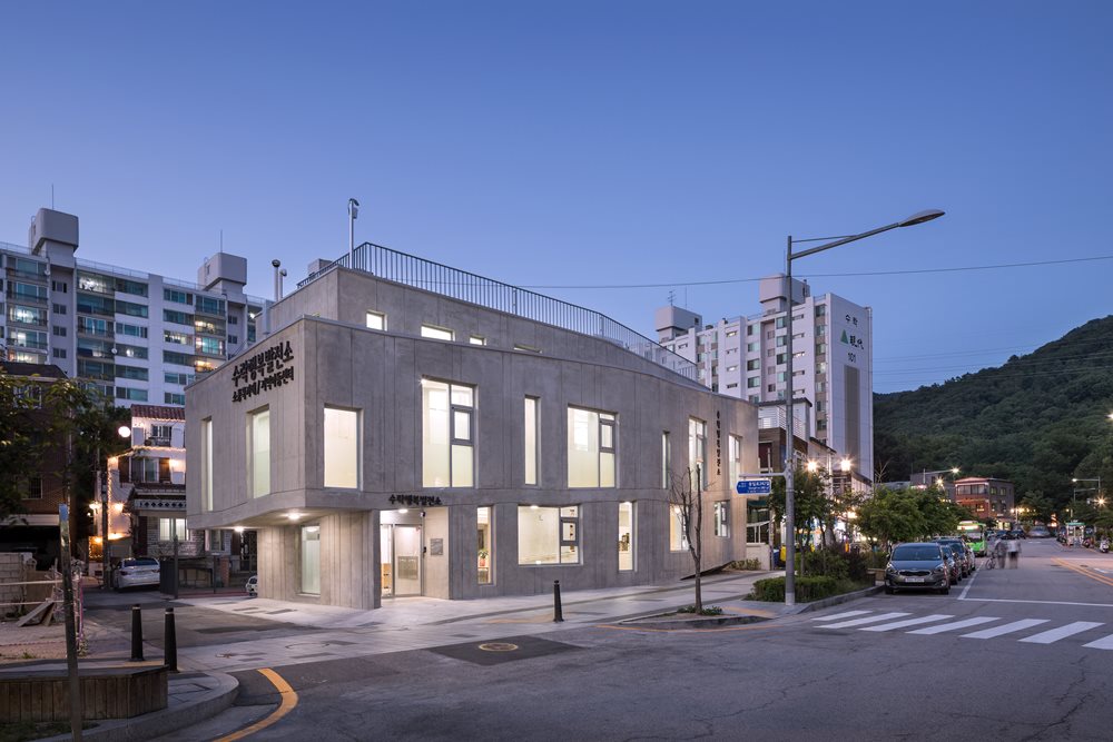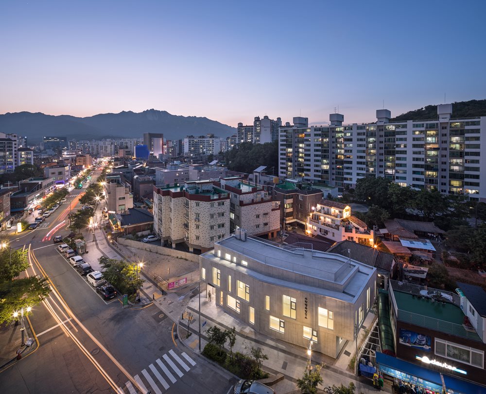 The site is located at the entrance of Mt. Surak in Sanggye-dong, Nowon-gu, where an old unauthorized construction used to be a restaurant. The surrounding environment is a residential area with a lot of apartments and terraced houses, but satisfaction with living conditions was lower than other areas due to absence of life-friendly communities. Since July 2017, an inhabitant steering committee has been set up for the establishment of Surak Happy Power Plant to discuss the operations and various programs of Surak Happy Power Plant. From the beginning of the project, the architect reflected the opinions of residents and communicated with them to share each other’s opinions on the scale and use of a book cafe, a multi-purpose theatre, and a group teaching room, so as to design and build Surak Happy Power Plant. Urban regeneration is neither the production of big political issues nor a top-down organizational structure which solves problems in an arbitrary way, but lies in the residents’ voluntary will to study the way to operate and the communication with an architect in an interactive and horizontal way. The first button to re-enrich a city should begin with small architecture that contains detailed dialogue and communication of existential relationships.