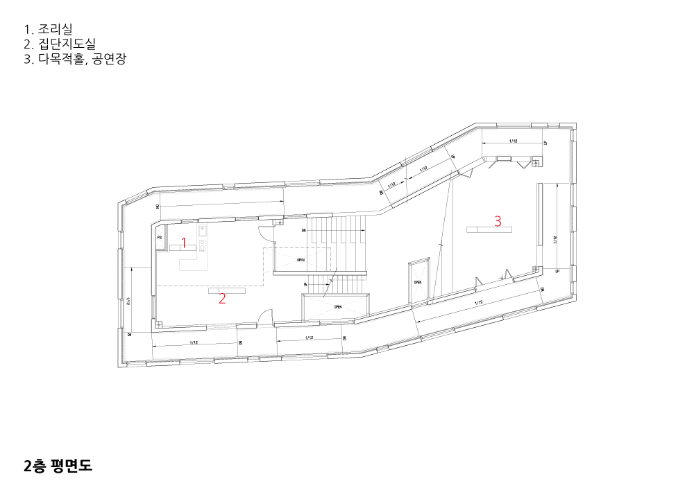 Small and various programs needed, first of all, to coexist due to the characteristics of this area without applying minimum programs although it is small architecture. The purpose of Surak Happy Power Plant was also to expect the residents of various classes to greet each other rather than the independence of community space, and to become the living small community where they recognize each other and natural noise and behavior harmonize with each other. The spatial strategy to overcome the physical environment of small architecture in a small land develops into a borderless community space. The lobby, Cheon Sang-Byeong Sopunggil, book café, theater, and group teaching room are extended through interactive communication, rather than severance using the fixed wall. We proposed a borderless community in which the actual communication between programs is important above all by setting a variable environment in which the size and usability of space is determined according to the purpose and reason of users.