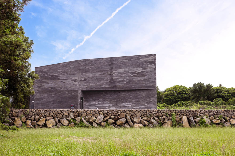 What we carefully considered the most in terms of elevation design was the choice of window shapes and exterior wall finishing materials. The north elevation has no openings except the main entrance, and the south elevation has a large living room window open wide toward an orchard. In terms of building form, we wanted it to be twisted like the form of starlight and to be a complicated from with slant line yet a mass. In particular, dark brick tiles were selected to put the soft light mystery of stars, and they were attached to the outer wall without masonry joint to produce a natural pattern. Like basalt rock in Jeju, we hope that the building becomes a landscape in nature. And we expect that the three families who will live here will create a life filled with various stories.