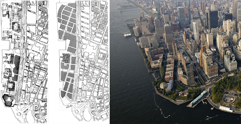 일례로 우리에게는 시저 펠리(Cesar Pelli)의 뉴욕국제금융센터로 잘 알려진 ‘뉴 욕 배터리파크 시티(Battery Park City)’ 사례를 눈여겨 볼 필요가 있다. 배터리 파크시티는 대규모 단지형 개발 중심의 초기 계획을 맨해튼의 전통적 가로체계 를 연결한 블록단위 개발로 변경하여 공공환경의 질향상과 뉴욕의 도시정체성을 살린 성공한 부동산 개발 사례로 뉴욕의 도시개발방향과 새로운 도심주거모델을 제시했다는 평가를 받고 있다.