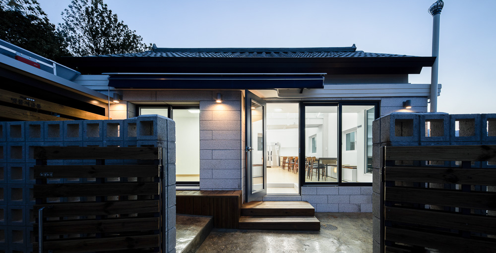 이 건물은 오랫동안 증축되고 확장되어 왔다. 리모델링 계획 시 우리는 시간에 따라 변해온 이러한 형상을 최대한 그대로 담아내고자 했다. 특히 마치 ‘함께 하 는 일상’을 담아내듯 서로 기대어 선, 두 개의 지붕과 매스로 된 건물 형상을 남겨 두었다. 재료 선정에 있어서도 기존 건물이 갖고 있던 시멘트기와, 화강석 혹두 기, 목재 등을 이용해서 오래전부터 있었던 것 같은 익숙한 건물이 되고자 했다. 내부로 들어가면 외부에서는 예상하지 못했던 높은 천정고와 노출된 철골 프 레임 그리고 환하고 가변적인 공간이 펼쳐진다. 마을경제를 위한 주민공동 작 업 공간 ‘마을사랑채’, 함께하는 밥상으로 소통하는 공간 ‘마을부엌’, 주민들의 쉼터이자 참여하는 공간 ‘마을안채’로 작은 공간들을 짜임새 있게 담아내었다.
