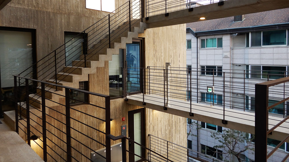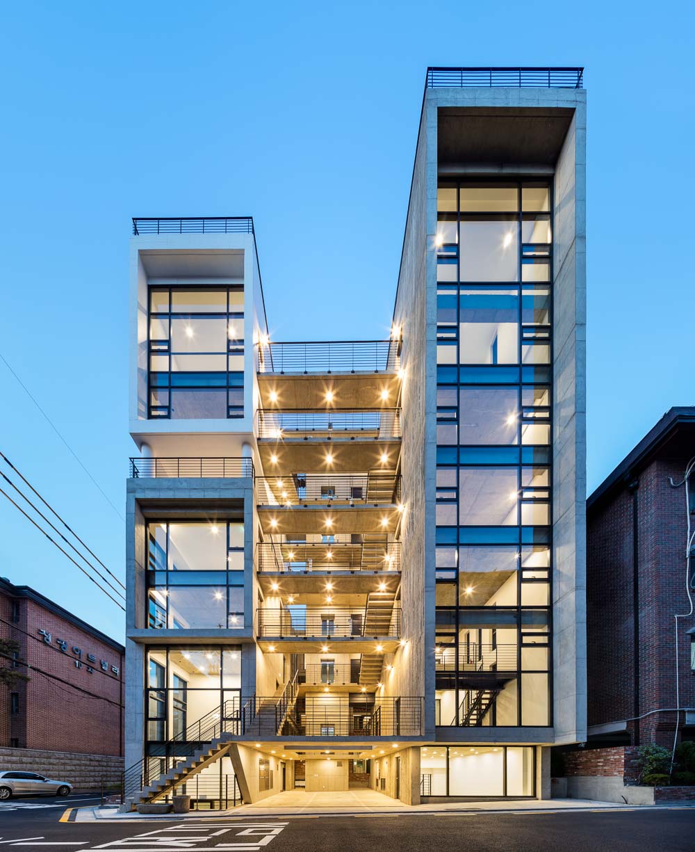 HANNAH HAUS Client | Kim Junggyu, Lee Sooyeong Supervisor | Shin, Mungyun _ Sam In-Architects Construction | COOM Pre & SchematicDesign | Kim, Jongseok Project team | Jeong, Soongeun / Kim, Byounhoon / Kim, Jiwon Location | 46, Donggwang-ro 39-gil, Seocho-gu, Seoul, Korea Program | Residential neighborhood facilities Site area | 447.90㎡ Building area | 268.61㎡ Gross floor area | 1,207.48㎡ Building to land ratio | 59.97% Floor area ratio | 198.53% Building scope | B2-F6 Structure | Existing building-Brick masonry, Extended building-SRC+RC Exterior finishing | Brick masonry and Exposed concrete Interior finishing | Gyp.B.D and Emulsion paint Design period | Jul. 2016 - Mar. 2017 Construction period | Jul. 2017 - Nov. 2018 Photograph | Shin, Kyungsub / Cho, Hyuna Structural engineer | Il Maec Eng. Mechanical engineer | Jungdo Eng. Electrical engineer | Ulim Eng. Fire engineer | Jungdo Eng. / Ulim Eng. |