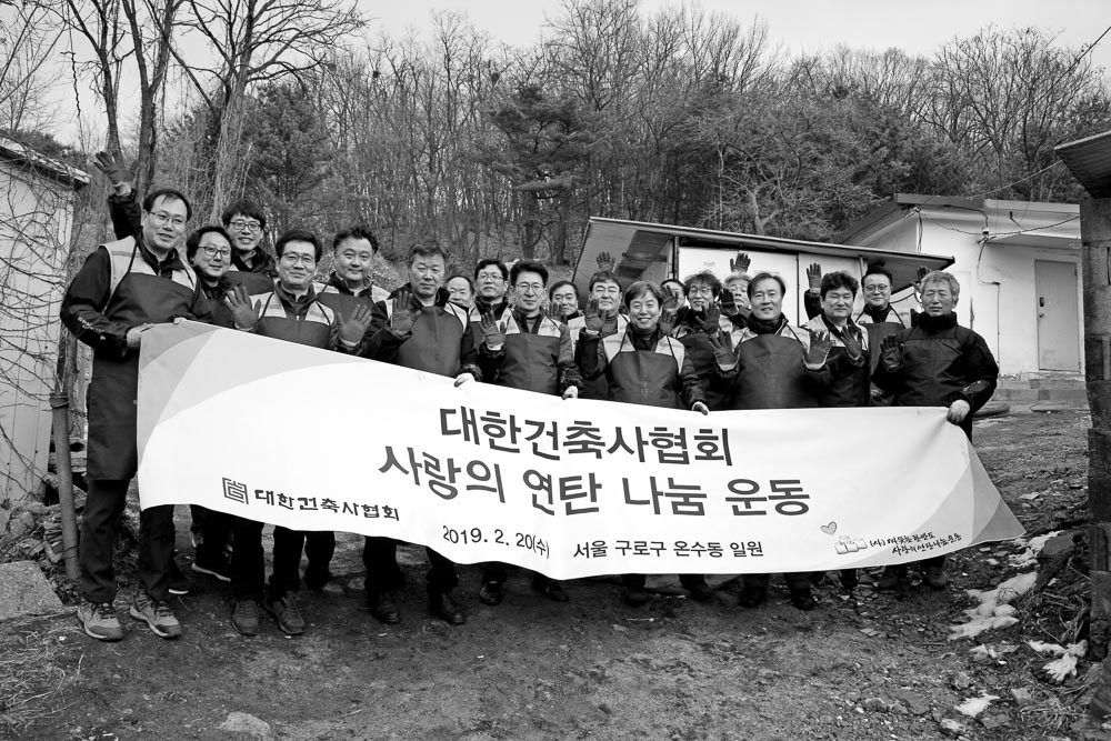 대한건축사협회가 연탄나눔 운동에 동참하며 이웃사랑을 실천했다. 대한건축사협회는 2월 20일 서울시 구 로구 온수동 일원에서 (사)따뜻한 한반도 사랑의 연탄나눔운동과 함께 소외된 이웃에게 연탄을 전달하는 ‘연탄 나눔 봉사’에 나섰다.