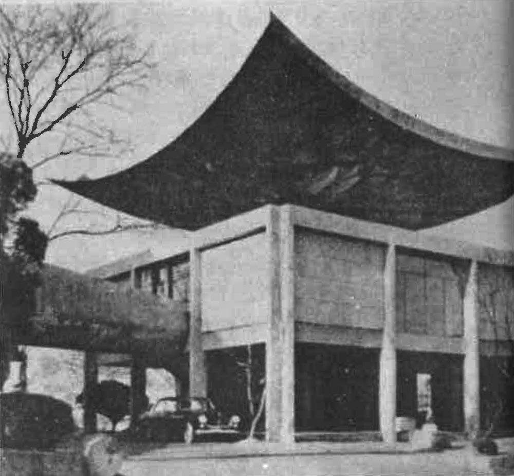 그러나 그러한 기대는 헛된 것이라고 필자는 생각한다. 작품 <프랑스 대사관>의 지붕. 또 를 충실히 따르고 있을 뿐만 아니라, 우리나라의 지붕이 가지는 장식성을 완전히 박탈하고 단순히 기본적인 포름만을 추상하고 있다. 그렇다면 지붕을 <떠받이式〉으로 만 들어 두드러져 보이게 한다는 것은 무엇을 뜻하는가.