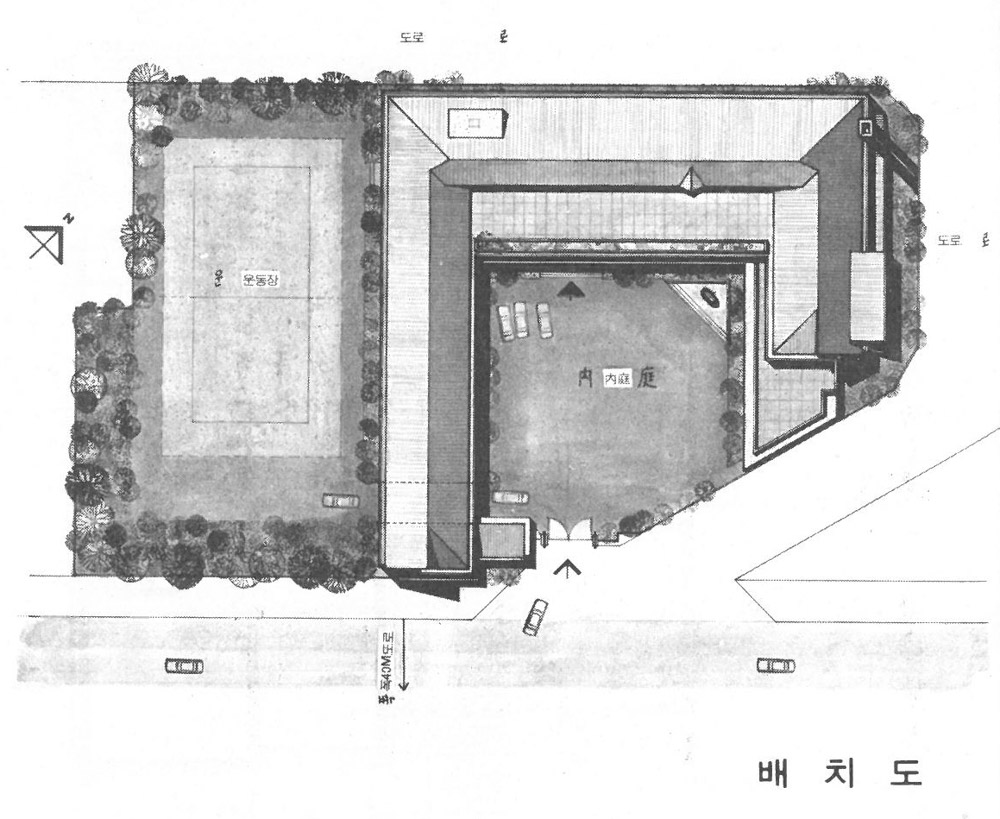 기존 대지의 상황과 최대한 일조의 효용성에 따른 복합적인 내부 기능조직을 상, 하로 구분했다. 이에 따라 2층에 근로 여성(150인)들의 공동 침실과 관 리자(수녀 10인)의 침실을, 1층에는 특별 교양교육 을 위한 다용도실의 동적인 공간을 두었다.