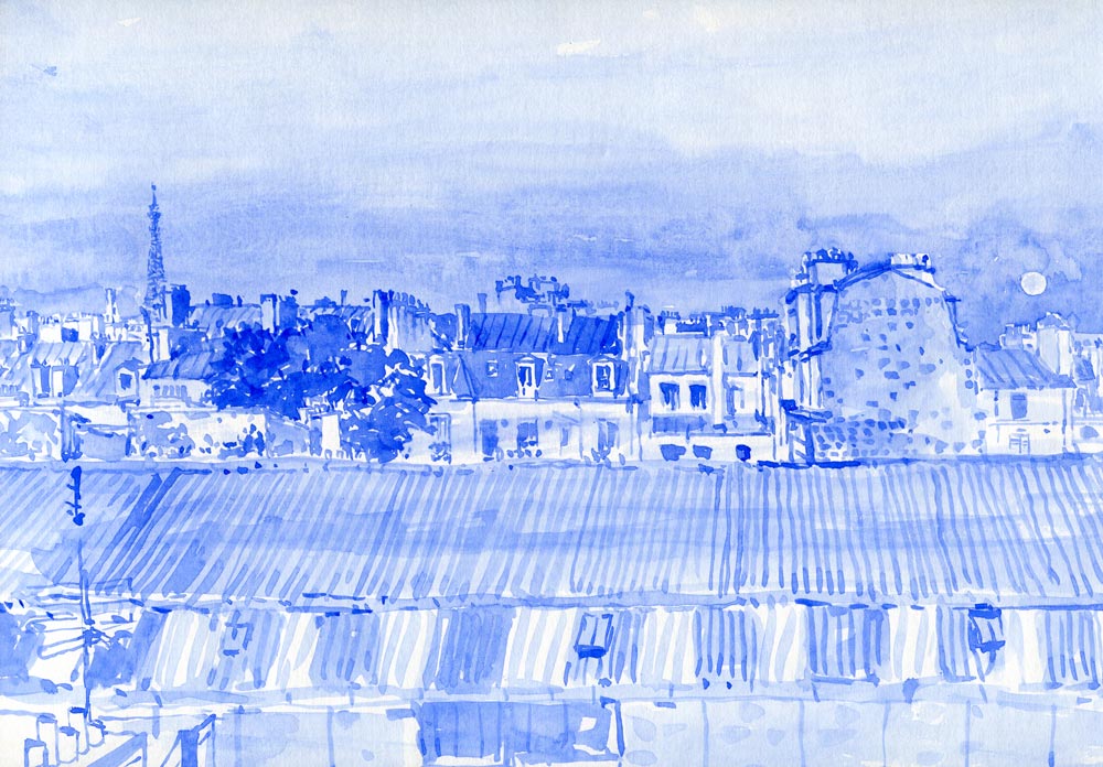 파리시내 몽소공원 부근에 숙소를 잡았다. 여행은 낯선 작가의 흥미로운 책처럼 새로움을 준다. 여행지의 새벽 풍경은 아름답고 신비롭 다. 욕심껏 돌아다닌 어제 일정 덕에 늦게 잠에 들었지만 나도 모르게 일찍 일어났다. 새벽의 도시가 푸른 빛으로 새롭게 열린다. 멀리 에펠탑이 푸르스름한 새벽하늘을 배경으로 형체를 드러낸다. 아이의 손가락처럼 꼬물꼬물 솟아 있는 굴뚝들, 지붕들. 이제서 서서히 제 모습을 드러내는 다락방 창문들. 군집된 지붕들이 어우러져 파리의 스카이 라인을 만든다. 즐거운 노래처럼 변주되고 이어지는 도시의 스 카이라인은 여행의 호기심과 겹치면서 나를 설렘으로 이끈다.