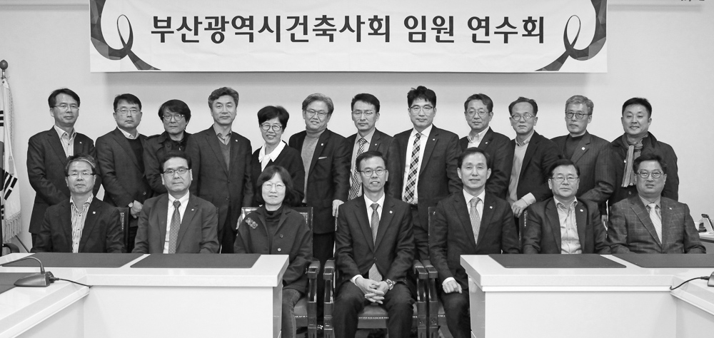 부산광역시건축사회(회장 김경만)는 4월 10일 부산건축사회관 대회의실에서 임원연수회를 개최했다. 행사에 는 제53회 정기총회에서 새로 선출된 신임감사 및 신임이사 6명과 기존 임원 12명이 모두 참석해 자리했다.