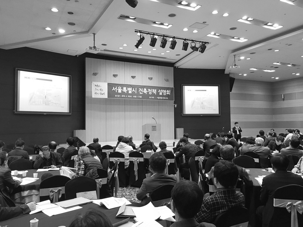 서울특별시건축사회가 서울시에서 진행하는 건축정책에 관한 설명회를 4월 10일 개최했다.