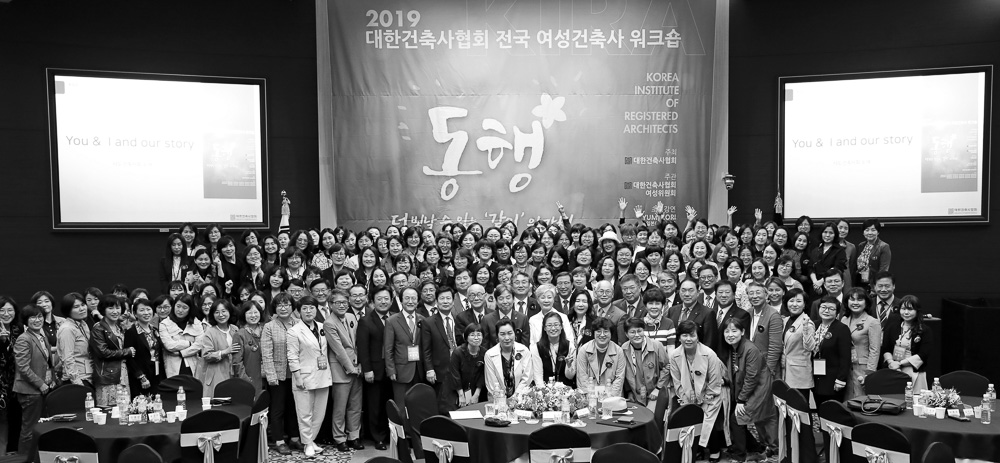 4월 23일 서울 건축사회관에서 열린 ‘2019 대한건축사협회 전국 여성건축사워크숍’. 이날 모인 300여 명 의 여성건축사 회원들은 대한건축사협회 내에서 하나가 되어 전 회원과 협회발전에 힘을 보태는 ‘동행의 가 치’에 뜻을 함께 했다.