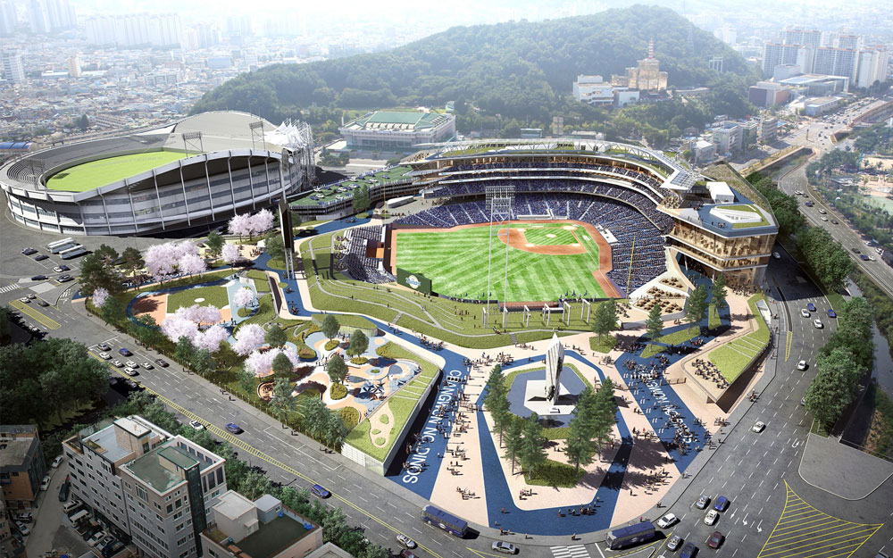 21세기에 지어진 광주와 대구의 두 신축 야구장은 그 점에서 아쉬움을 준다. 야 구 경기를 TV에서 중계할 때 가장 많이 잡히는 장면은 타자와 포수, 그리고 투수 가 대치하고 있는 순간이다. 이때 포수 뒷쪽 관중석이 보이는데, 관중 수가 많이 보일수록 경기가 흥미진진해 보인다. 하지만 잠실야구장이나 부산의 사직야구장 을 보면 포수 뒤쪽 관중석 레벨이 너무 높은 곳에서 시작돼 마치 거대한 장벽처 럼 느껴진다. 관중 없이 야구를 하고 있는 듯해서 침울하다. 경기의 즐거움은 경 기 자체와 선수들의 플레이에 대한 관중의 열광적인 반응이 함께 할 때 배가된 다. 경기장과 관객의 경계에 있는 벽의 높이는 그래서 대단히 중요하다. 높은 벽 은 권위주의를 연상시킨다. 포수 뒤쪽 좌석은 주로 권력과 돈을 가진 사람들이 차지하는데, 그들을 지상보다 더 높이 띄운 것이다. 그것은 마치 초등학교 운동 장에 있는 단상과 같다. 운동회가 열리면 일반인들은 계단식 스탠드나 운동장 바 닥에 앉아 있다. 반면에 그 높은 단상에는 햇빛을 막아주는 천막이 있고, 이른바 내외 귀빈들이 의자에 앉아 있다.