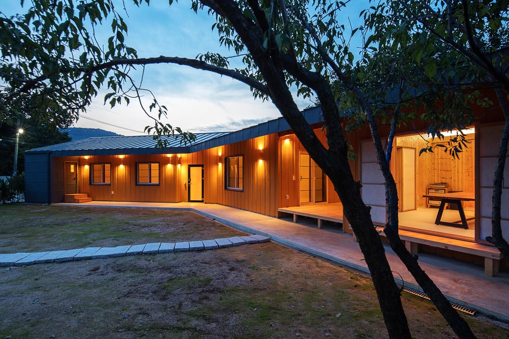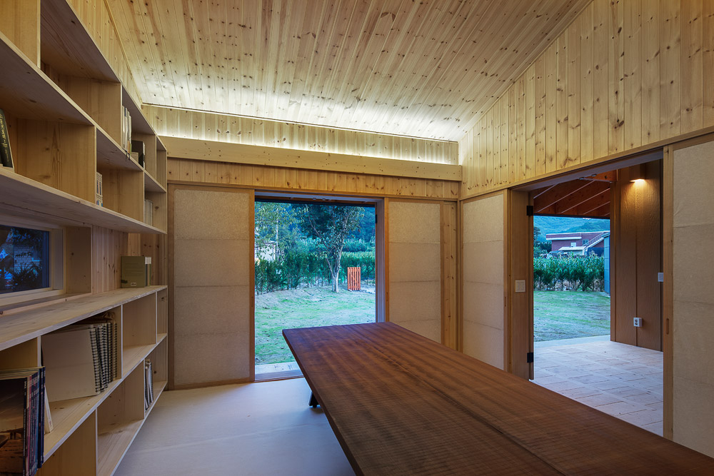 Seo Hyang Gak Client | Park, Tan / Lee, Hyosook Supervisor | Won, Gyeyoen Construction | Kim, Minsu / Kim, Mingi Project team | Lee, Jeseon Location | Seogok-ri, Pan bu-myeon, Wonju-si, Kwangwon-do, Korea Program | Detached house Site area | 438.00㎡ Building area | 147.50㎡ Gross floor area | 124.60㎡ Building to land ratio | 33.68% Floor area ratio | 28.86% Building scope | 1F Structure | RC, Lightweight Wood Structure Exterior finishing | 0.7T Aluminum Roof Panel, Cement Siding, Exposed Concrete, Tile Interior finishing | 12T Rred Pine, Wood Flooring, Tile, Korean Handmade Paper Design period | 13 months Construction period | 7 months Photograph | Park, Wansoon Structural engineer | Nara Structural engineering Co. Mechanical engineer | Sinwha engineering Electrical engineer | Sinwha engineering |