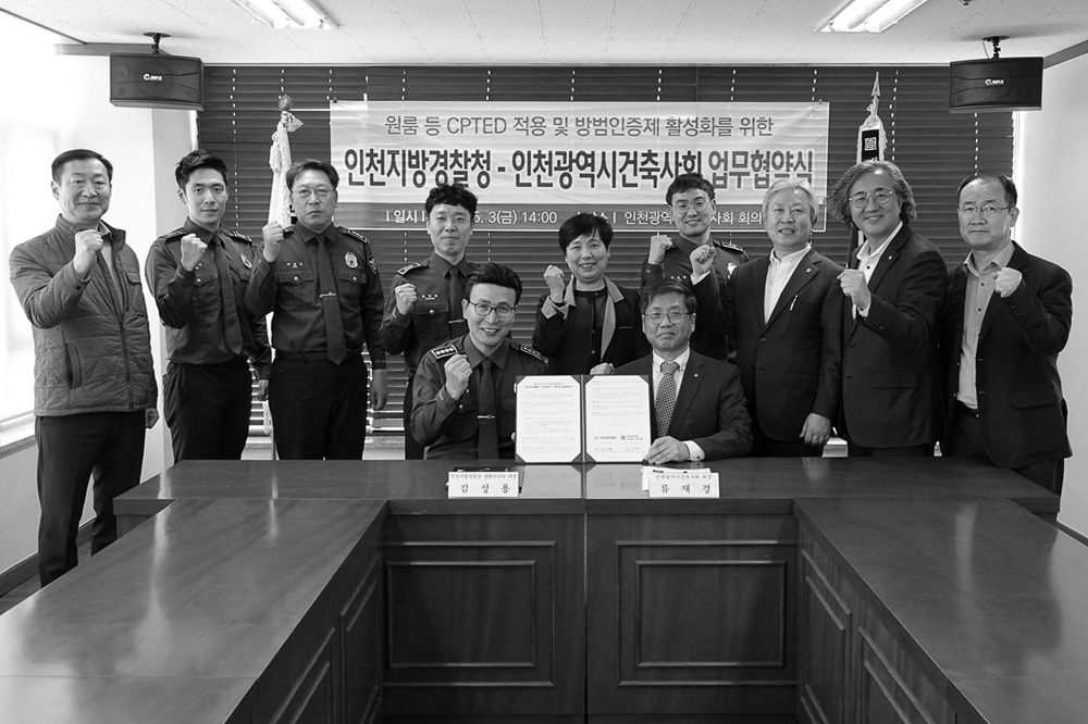 인천광역시건축사회가 범죄 예방을 위해 지역 경찰청과 손을 잡았다. 인천광역시건축사회는 5월 3일 인천 지방경찰청과 ‘원룸 등 CPTED(Crime Prevention Through Environmental Design) 적용 및 방범인 증제 활성화를 위한 업무협약’을 맺고 지역 치안 유지 활동에 협력하기로 약속했다.
