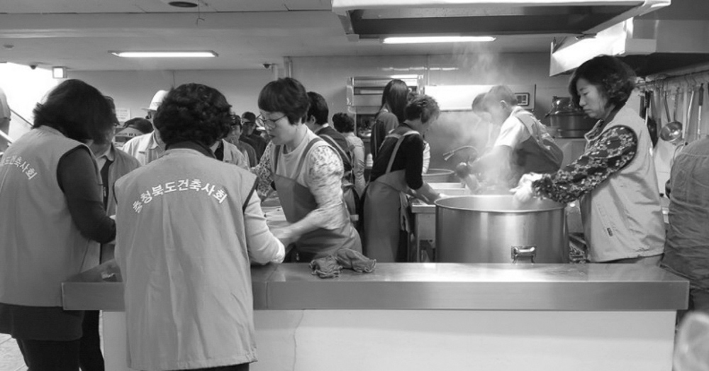충청북도건축사회는 5월 9일 회원 20여 명이 참석한 가운데 청주 YMCA지하식당에서 400여 명의 노인에 게 육개장, 떡, 과일, 음료 등을 지급하고 위로의 시간을 갖는 봉사활동을 실시했다. 이근희 충청북도건축사 회 회장은 “충북건축사회가 어려운 이웃을 보듬는데 적극 앞장서겠다”고 말했다.
