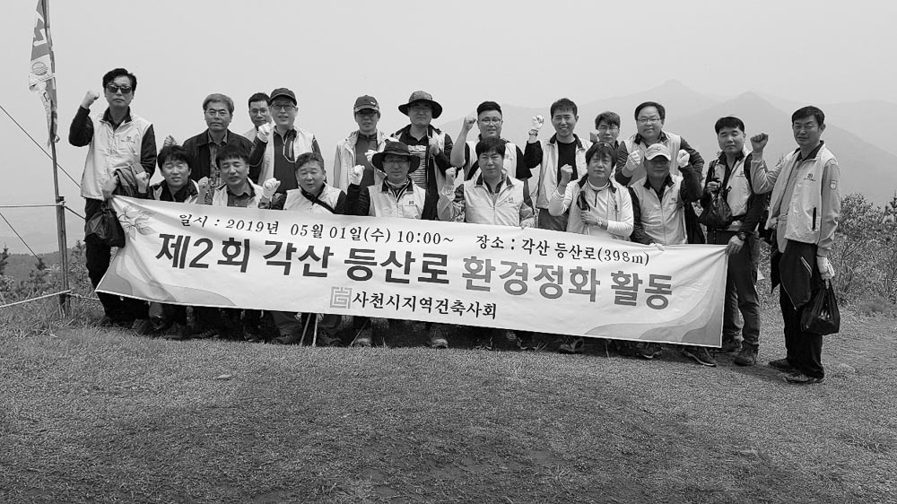 사천지역건축사회 회원들은 5월 1일 경남 사천시 각산 등산로 일대에서 생활쓰레기 제거를 목표로 ‘제2회 각산 등산로 환경정화활동’을 펼쳤다. 이날 회원들이 청소한 각산 등산로는 정상부에 사천바다케이블카를 두고 있어 시민들이 즐겨 찾는 관광명소로 유명하다. 사천시도 지난 4월 케이블카와 연계한 각산 정상 일대 에 숲 가꾸기 사업을 진행한다고 밝힌 바 있다. 사천지역건축사회 측은 “지속적으로 환경 정화 활동을 추진 하는 등 쾌적한 지역 환경 조성을 위해 최선을 다하겠다”고 밝혔다.