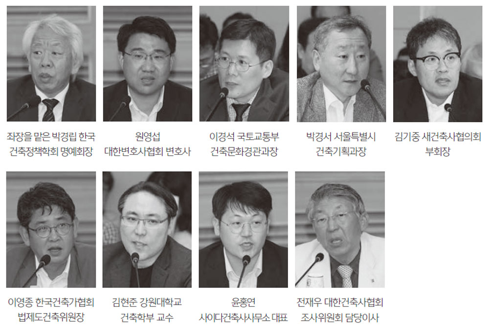 “국가·사회 내 건축은 국민의 생명·안전을 담보하는 중요 요소다. 건축의 전 과정에 걸쳐 핵심역할을 하는 건축사의 직업윤리체계는 그렇기 때문에 매우 중요하다. 동시에 그 직업윤리체계를 원활하게 작동케 하는 시스템의 확보도 국민의 생명·안전을 담보한다는 측면에서 우선돼야 할 과제이자 목표가 돼야 한다.” <이 명식 동국대학교 건축학과 교수, 한국건축설계학회장>