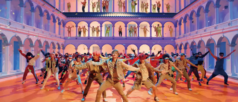 BTS의 비디오 피땀눈물, Fake Love, IDOL, Boy with Luv에 등장하는 화면들 은 현란하기까지 하다. 심지어 불교 만다라를 연상하게 하는 자유분방함도 드러 난다. 색의 스펙트럼을 전부 사용하고 있는 과한 칼라 구성임에도 놀랍도록 아름 다운 느낌을 준다. 형광색까지 과감하게 사용하는 구성에서 건축 또한 등장한다.