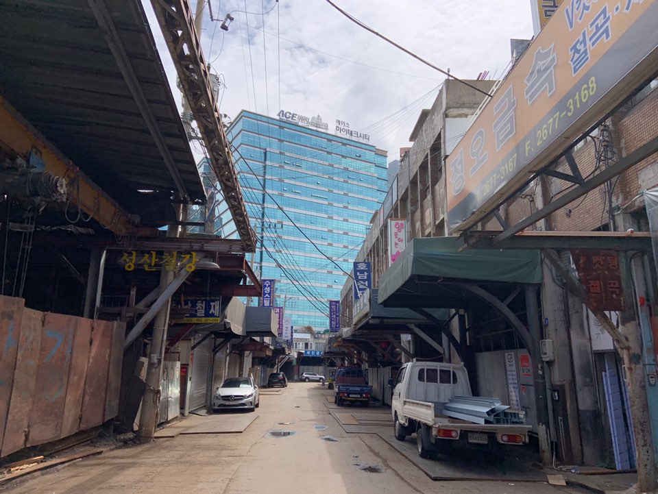 문래동의 주말 오전은 생각보다 더 쓸쓸했다. 동네에서 느껴지는 어떤 감정보다는 시각적인 이미지가 강렬한 곳이었다. 차가운 색을 지닌 동네에 들어서면 자연스레 나 는 쇠와 페인트 냄새, 그 속에서 생겨난 예술가들의 아지트와 차가운 커피 한 잔을 마실 수 있는 카페들까지 어울리지 않으면서 어울리는 신기한 경험을 했다. 이번 아 키살롱에서는 특별히 그동안의 글 위주의 동네 탐방보다는, 사진으로 현장의 분위기를 담아내려 노력했다. 건축학도 4명이 모여 각기 다른 주제를 가지고 동네를 탐방 하였고, 그 결과로 각자 사진을 제출하기로 했다. ‘벽화와 간판, 골목과 질감’이라는 네 가지 주제를 가지고 문래동을 들여다보기로 했다. 단순한 기행문에서 그치지 않고, 사진을 통해 글 너머의 것을 전달하고 싶었다.