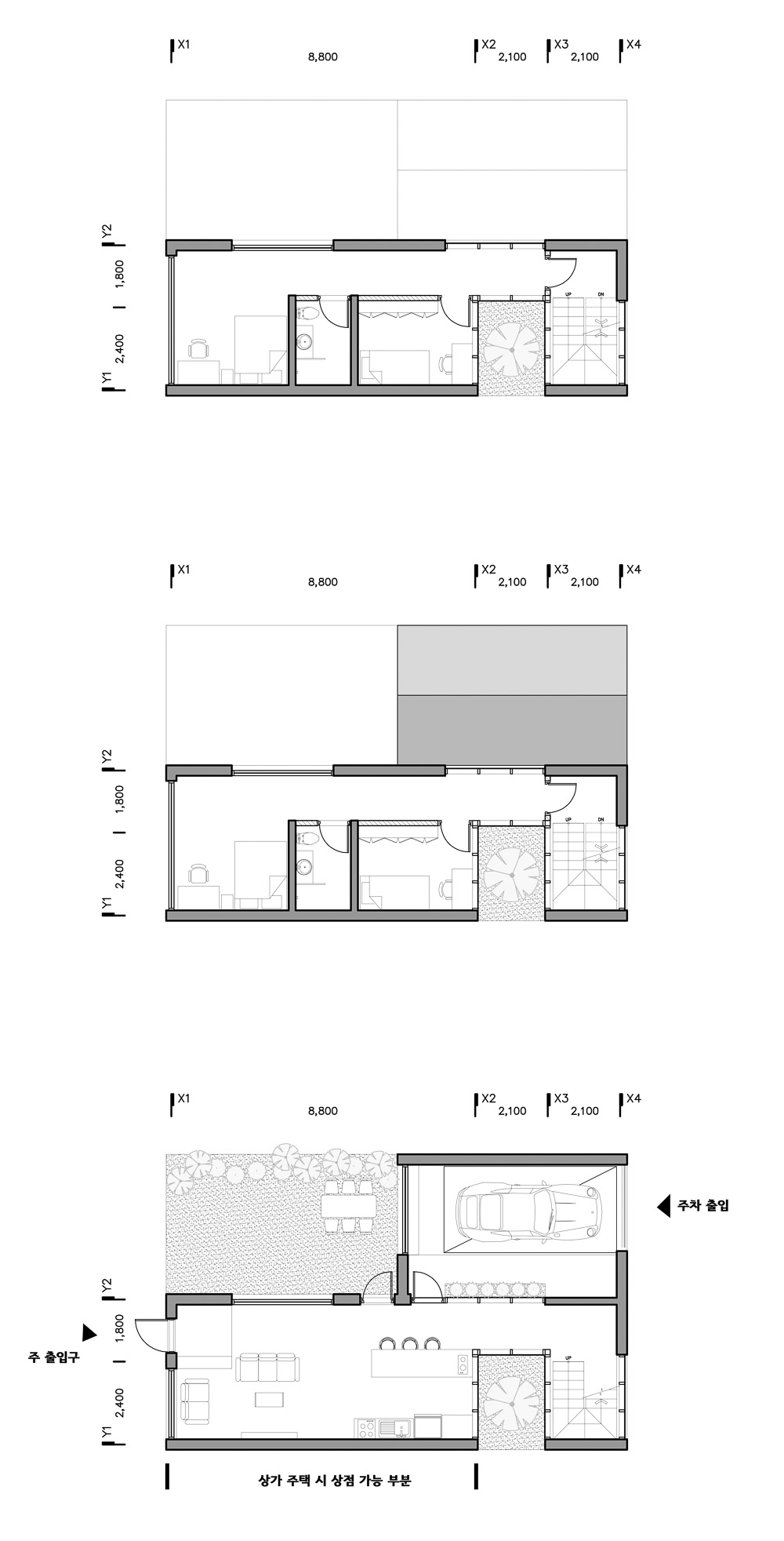 즉, 1층의 거실을 주거공간과 분리한 동선은 향후 변용을 고려한 것이다.