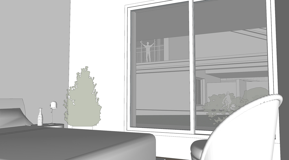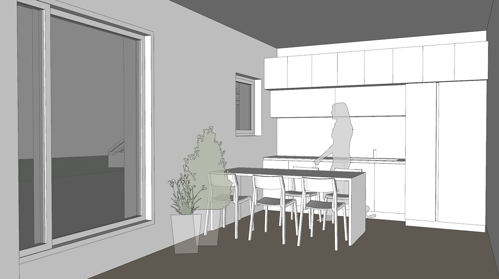 주 피해 지역인 고성군의 65세 이상 인구가 전체인구의 24.1%임을 고려하여 거 주공간은 단층으로 계획한다.(UN에서 정한 기준으로 65세 이상 인구가 7%이면 고령화사회, 14%는 고령사회, 20%는 초고령사회. 전국기준 13.9%, 서울기준 13.4%. 통계청 국가통계포털 2017년 자료) 3인 이하의 세대로 추정하였으므 로, 1인가구, 노부부, 부부와 자녀 1명 등을 타겟으로 할 때 방 2개가 적정할것으 로 판단하고, 방 2개와 10자 이상의 수납이 가능한 드레스룸을 배치했다. 각각의 주택은 개인 마당과 1대의 주차공간을 가진다.