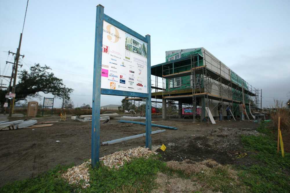 로어 나인스 워드의 주민들에게 집이 필요하다고 생각한 그는 놀라운 추진력 으로 ‘Make It Right(메이킷라잇)’ 재단을 설립해 집짓기 프로젝트를 시작한 다. 지역 커뮤니티, 건축사들과의 미팅 등 준비과정을 마치고 재단이 출범해 추진한 사업의 시작은 ‘핑크 프로젝트(Pink Project)’였다. 쓰레기더미가 치 워진 폐허에 앞으로 세워질 집들을 상징하는 핫핑크의 구조물들이 설치됐다. 메이킷라잇이 더욱 주목받았던 것은 이 프로젝트에 유명 Architect인 프랭 크 게리(Frank Gehry), 반 시게루(Shigeru Ban), 톰 메인(Thom Mayne) 이 참여했기 때문이다. 반 시게루의 경우 전 세계 재해지역을 찾아 다니며 이 재민을 위한 공간을 만든 ‘재난 건축사’로도 유명하다. 이 과정에서 메이킷라 잇은 무엇보다 살게 될 커뮤니티 주민들의 의견을 반영하려 애썼다. 또한 여 러 디자인 가운데 어떤 집에 살 것인가를 주민들이 결정하게 했다. 이 프로젝 트로 로어 나인스 워드에 수많은 관광객들이 스타 건축사들의 집을 보러 몰 려들었었다.