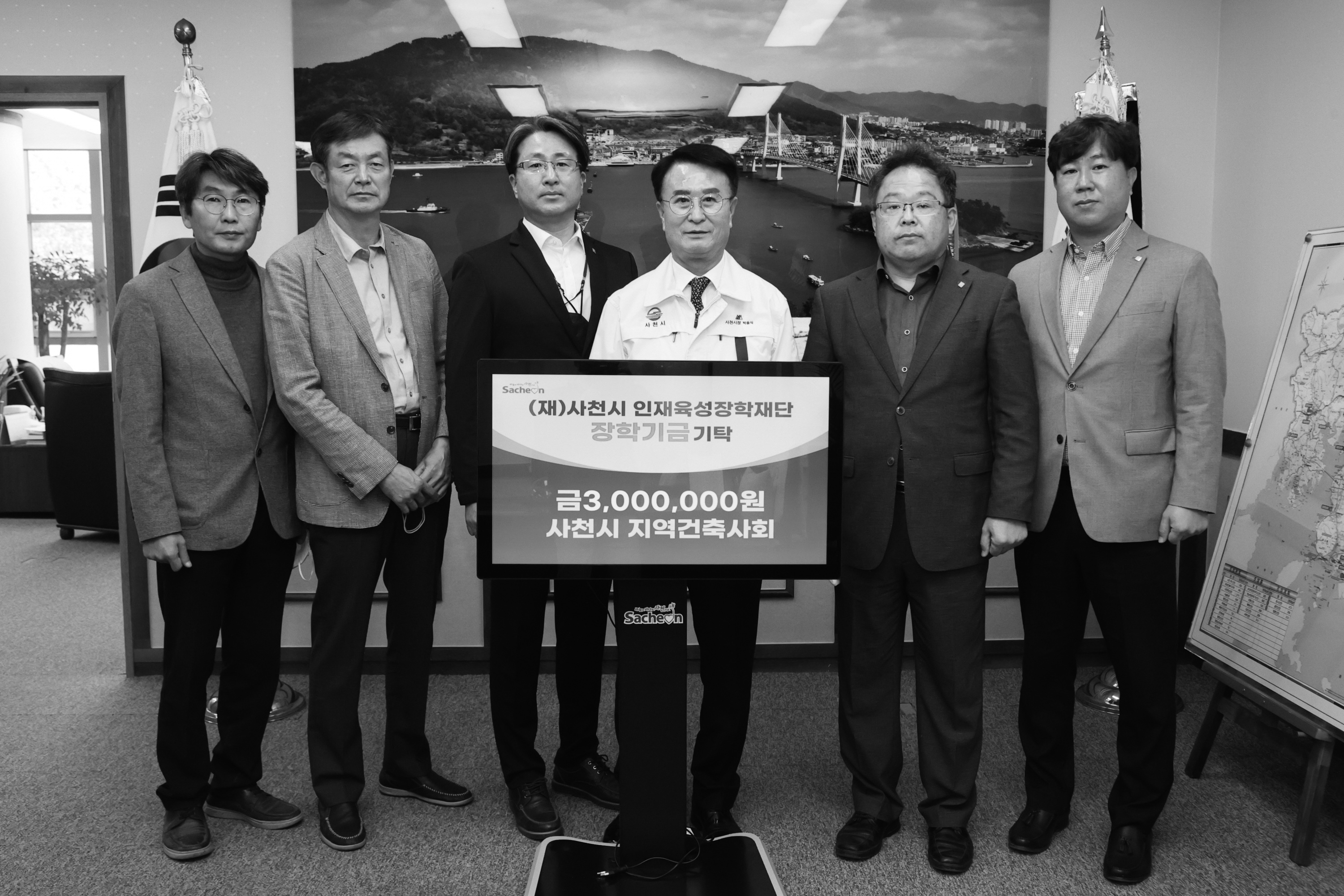 사천지역건축사회가 11월 3일 사천시청을 방문해 지역 인재 육성을 위해 써달라고 장학금 300만 원을 기 탁했다. 사천지역건축사회는 지난 2009년부터 장학금을 전달하고 있으며, 현재까지 총 1,600만 원을 인재 육성장학재단에 기탁했다.