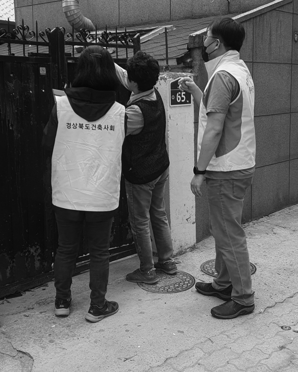 경상북도건축사회 포항지역건축사회는 지난 9월 포항시와 합동으로 제11호 태풍 힌남노 피해를 입은 주택 현장에 긴급 투입돼 피해조사를 실시했다고 밝혔다. 포항지역건축사회와 포항시 공무원들은 명절휴가를 반 납하고, 조사를 진행한 결과 약 800건의 조사를 마쳤다. 이진형 포항지역건축사회장은 “태풍 피해의 심각 성을 통감하며, 지역사회의 일원으로 이번 피해조사에 참여하고, 봉사하게 됐다”면서 “앞으로도 포항시와 적극 협력해 지원해 나갈 것”이라고 말했다.