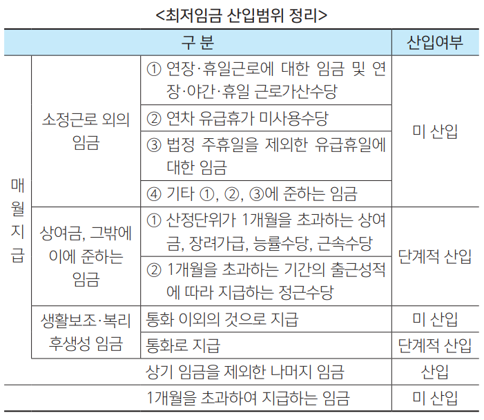 2. 단계적으로 최저임금 산정에 포함되는 임금항목