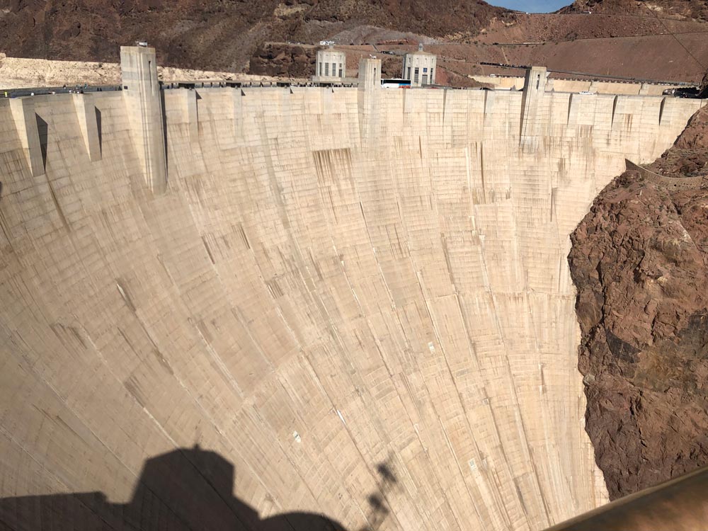 시내를 구경한 뒤에 우리는 후버댐으로 향했다. 라스베이거스에서 거리상 40분 정도 소요되는 곳에 있는 후버댐은 트랜스포머와 샌 안드레아스 등의 영화에서 도 소개됐고, 현재도 사람들이 많이 찾는 장소이기도 하다. 라스베이거스의 역사 는 후버댐에서부터 시작됐다. 서해안으로 가는 길목의 오아시스 도시로부터 시 작해 1931년 허버트 후버 미국 대통령이 후버 댐 공사를 시작하면서 본격적인 카지노와 휴식시설을 갖춘 도시의 모습을 갖추게 됐다. 후버댐은 대공황을 타개할 목적으로 계획되었고 대공황시절 가장 성공적인 토목 공사로 회자되고 있다. 911테러 이후로 경계가 강화되어 검문검색이 철저하게 이루어지고 있다.