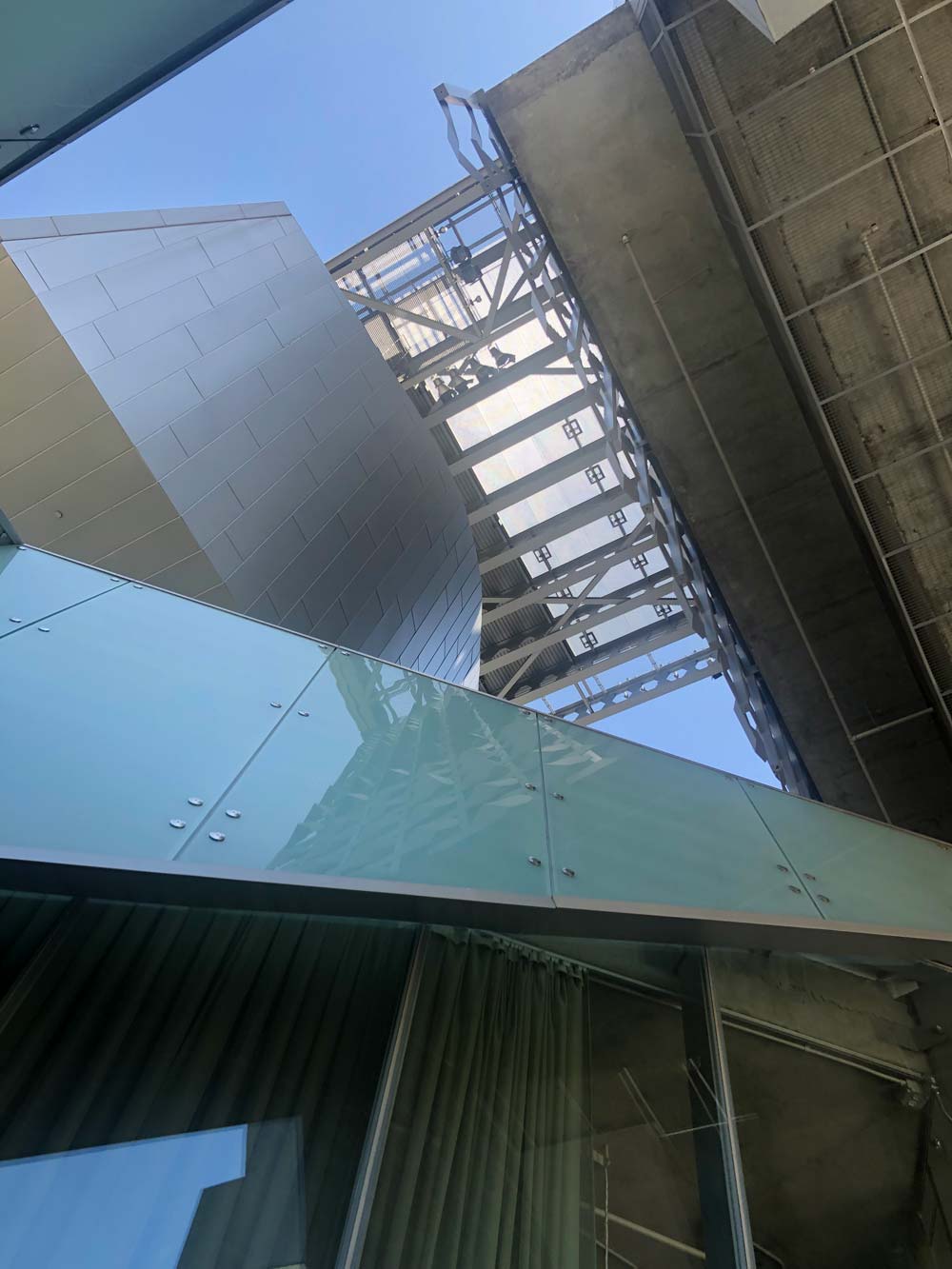 LA에서의 마지막 밤을 보내고 월트디즈니콘서트홀로 이동했다. 프리츠커상을 수상한 건축사 프랭크 게리(Frank Gehry)가 설계를 맡은 작품이다. 건축물의 외관은 스테인리스스틸로 되어 있는데, 빛반사로 주변이 녹아 내리는 현상이 일 어나 문제가 된 적도 있다. 독특한 건축적 형태로 인하여 LA의 명물로 자리매김 하고 있다. 내부 공간의 변화와 외부공간의 특이함이 사람들을 매료시켰다. 메인 홀을 못 들어가 본 게 아쉬웠다.