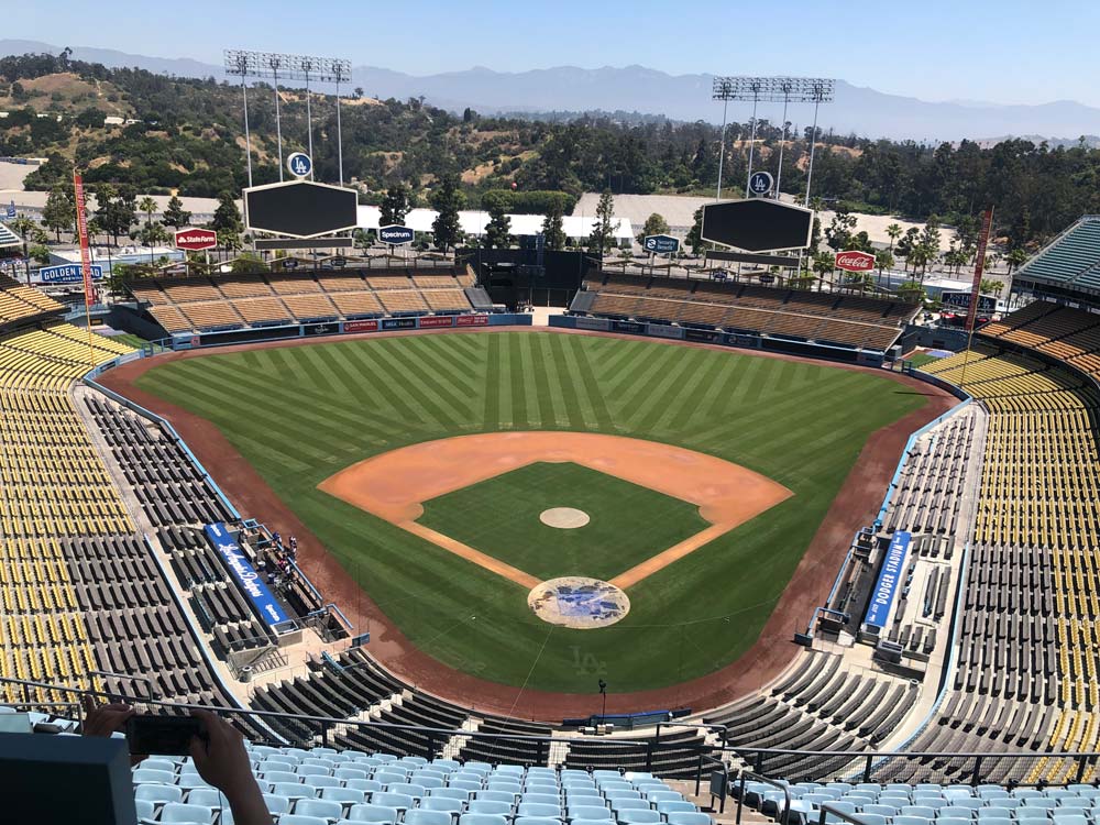 시간이 되어서 류현진 선수가 뛰고 있는 다저스타디움을 경유키로 했다. 현장에 서 본 경기장 모습은 그 규모에서 크게 놀라게 된다. 한인이 많이 사는 LA라 경 기 때 마다 많은 한국 분들이 찾는다고 한다. 우리가 참관한 날은 경기가 없는 날 이라 무료로 입장해 살펴볼 수 있었다. 류현진 선수가 올해 사이영상을 받기를 기 원하며, 짧은 경기장 관람을 마쳤다.