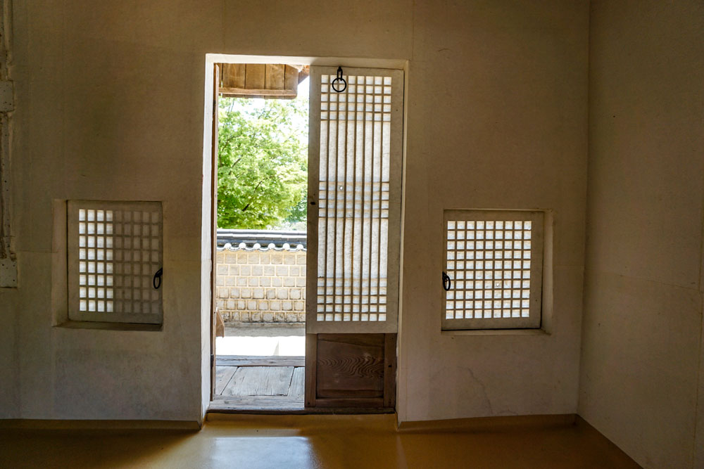 신재 주세붕이 조선에 성리학을 도입한 회헌 안향의 학덕을 기리기 위해 세운 한 국 최초의 서원인 소수서원紹修書院의 명륜당明倫堂은 다른 서원의 강당과 그 모습이 다르다. 3×3칸의 정사각형 대청마루가 북측의 온돌방을 제외한 동쪽, 서 쪽, 남쪽 방향으로 한지 창문을 두르고 있다. 정사각형 강당 마루에 한지 문짝을 두른 곳은 소수서원이 유일하다. 동쪽의 창문으로 햇살이 내려앉으면 문살에 강 한 음양이 새겨지고 흐릿한 창문이 조금씩 빛으로 물들어 실내 공간이 밝아진다. 명륜당의 대청마루는 하루의 시간을 알려주는 해시계와도 같다.