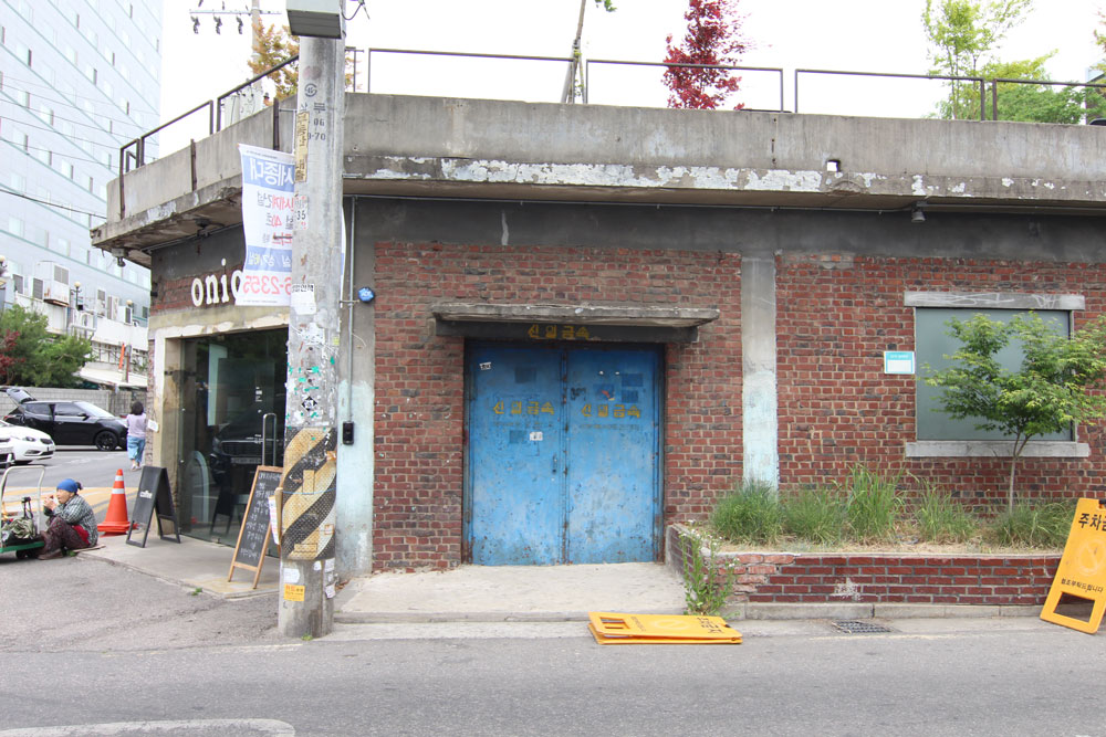 소위 요즘 뜨는 디자인 스튜디오인 2인조 아티스트 그룹, Fabrikr(패브리커의 작 품인 카페) ‘어니언’은 대림창고와 더불어 성수동의 대표적인 공간재생 사례라 할 수 있다. 한 건물이 가지는 역사성을 보여주듯 시간의 변화 또한 고스란히 담 고 있는 매력적인 공간이다. 1970년대에 처음 지어져 50여 년의 시간 동안 식당, 가정집, 정비소 그리고 공장에 이르기까지 변화무쌍한 공간의 흐름을 건물은 겸 허히 받아들인다. 녹슨 철문에 쓰여 있는 ‘신일금속’, 미처 바래지지 못한 페인트 자국은 그 축적된 시간 속으로 우리를 안내한다