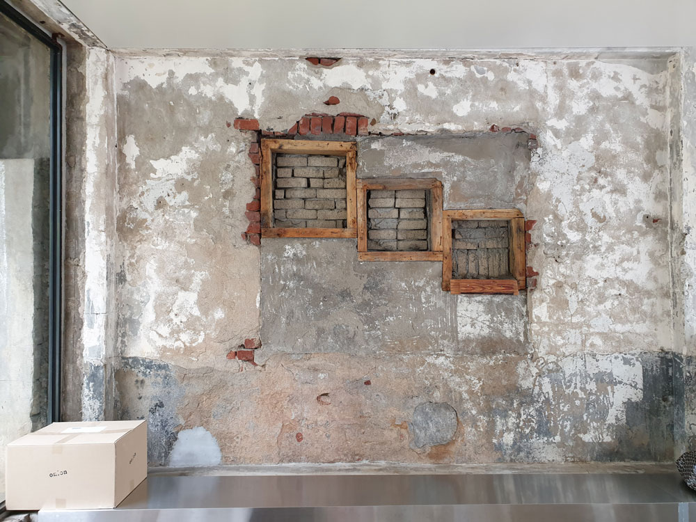 처음 카페에 들어서면 장방형의 중정 공간이 손님을 맞이한다. 언제부터 그 자리에 있었는지 모를 다양한 화분과 나무들에게 자리를 내어준 중정은 더 생기를 띤 모습이다. 중정을 둘러싸고 있는 빛바랜 타일들과 갈라진 페인트들은 그 자체로 꽤 고즈넉한 분위기를 자아낸다. 보통 화장실에서나 쓰일 법한 45사이즈의 타일 들이 외부 마감으로 치장되었지만, 전혀 어색함 없이 공간에 잘 녹아들어 있다.