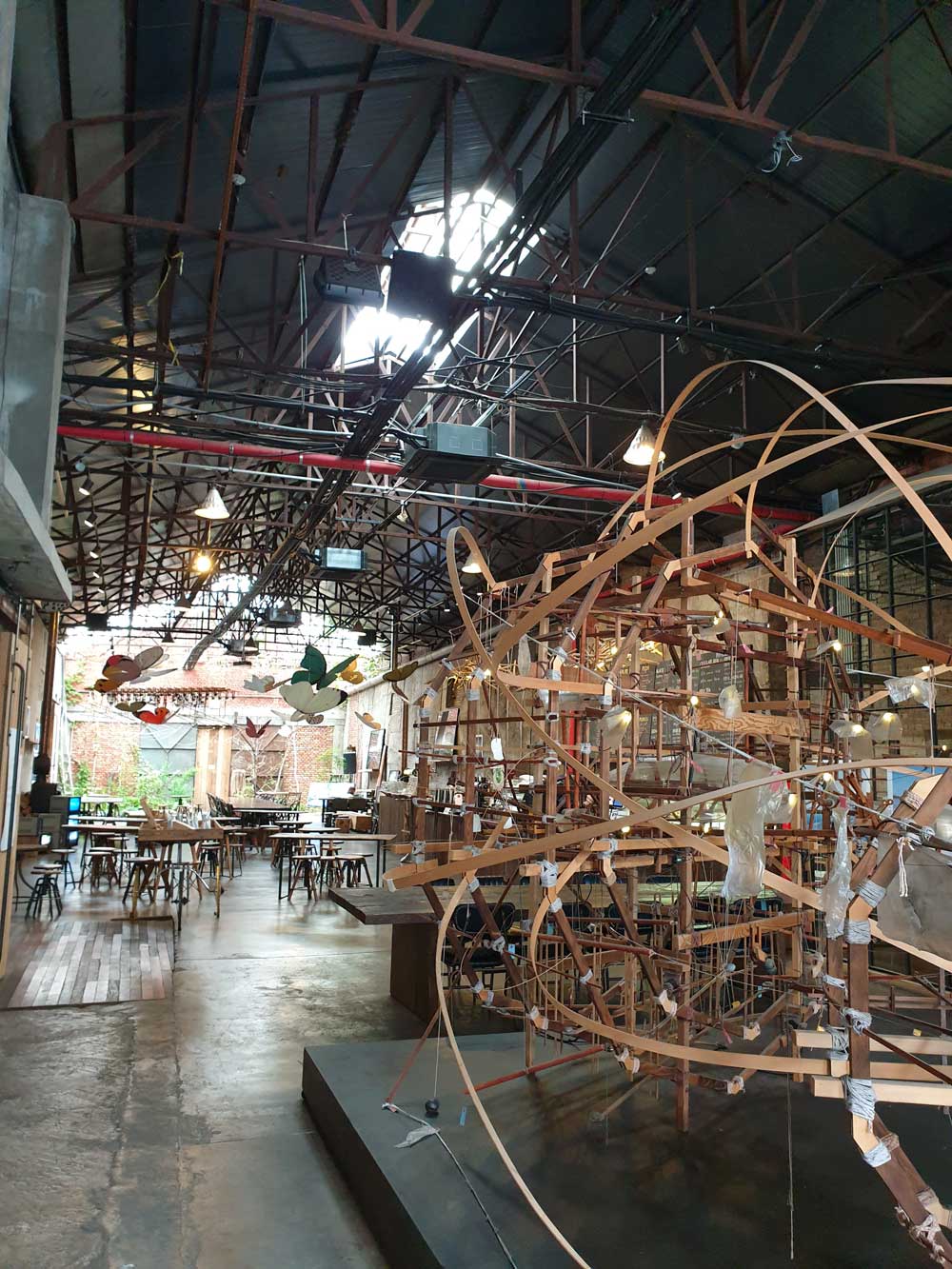 공장을 개조하여 만든 이곳은 공장의 구조체를 그대로 유지하고, 내부공간을 구 획하여 갤러리겸 카페로 이용되고 있다. 기존의 트러스 지붕을 그대로 노출시켜 구조미를 보여준다. 높은 층고로 인해 벽면뿐만 아니라 천장에도 다양한 예술작 품을 전시해 눈길을 끌며, 바닥 또한 커다란 나무를 비롯한 식물들을 볼 수 있다. 공장의 느낌을 그대로 유지하면서 자칫 삭막해 보일 수 있는 공간에 여러 예술작 품들과 식물들을 어우러지게 배치함으로 공간의 변화를 꾀하였다. 또한 획일화 되지 않은 다양한 형태의 가구들이 이곳을 더욱 찾고 싶은 공간으로 만든다.