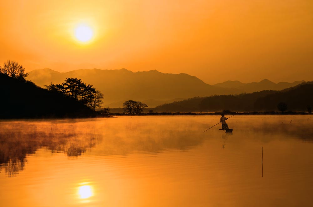 경남 창녕군에 위치한 우포늪. 우포늪은 우리나라 최대의 자연늪지다. 가장 규모가 큰 우포늪뿐만 아니 라 목포, 사지포, 쪽지벌 등 네 개의 늪을 모두 아우른다. 이 늪지대는 경남 창녕군의 유어·이방·대합면 등 3개 면에 걸쳐 있는데, 둘레는 7.5㎞에 전체면적은 2,314,060제곱미터에 이른다. 이곳에 늪지가 처 음 형성되기 시작한 때는 1억 4,000만 년 전이라고 한다. 공룡시대였던 중생기 백악기 당시에 해수면 (海水面)이 급격히 상승하고 낙동강 유역의 지반이 내려앉으며 형성된 우포늪은 오늘날 람사르 협약에 의해 세계습지보호지역으로 선정됐다. 이른 봄날 새벽에는 물안개가 피어나면서 출어하는 어부의 삿대 질과 떠오르는 아침해가 앙상블을 이룬다. 이런 몽환적인 장면은 한 폭의 동양화를 보는 듯하다.