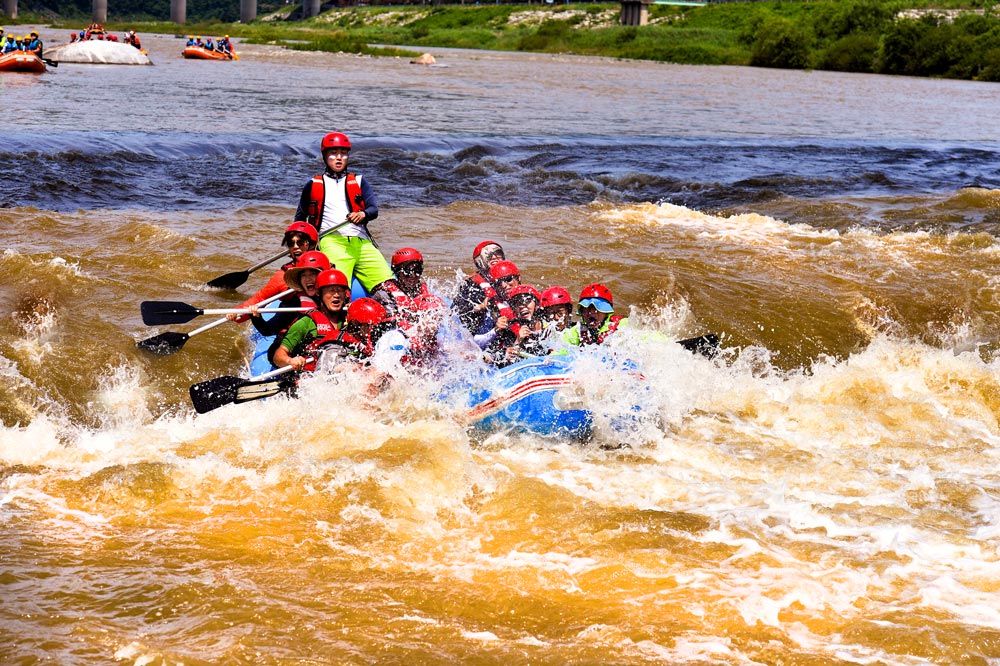 경남 지리산 자락의 아름다운 풍광을 자랑하는 곳 중 하나인 경상남도 산청은 한여름에 작열하는 무더위를 피해 인근의 대도시의 사람들이 모여들어 레프팅을 하며 더위를 식히는 곳이다. 한 낮 작열하는 태양의 열기 가운데 간담을 서늘하게 하는 레프팅의 즐거움이 가득하다. 산청의 아름다운 경치 속에 서 사람들의 큰 함성과 환호의 아우성이 함께 퍼져 나간다. 약 3킬로미터에 이르러서는 레프팅 과정 중에 보트가 뒤집히기도 하고 낙차가 심한 계류에서 승선인원 모 두가 물에 빠진 서로를 보면서 파안대소를 하는 등 한여름의 더위를 잊는 재미가 쏠쏠한 곳이다.