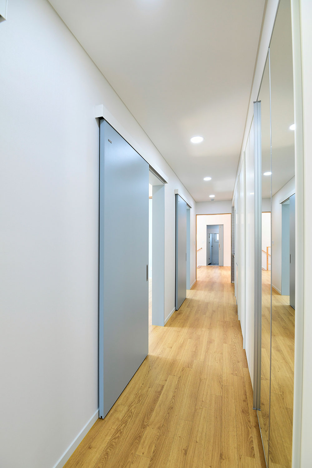 Originally, initial design started from one mass like a parent and a child. Parents and children's zones are divided and arranged in halflengthwise to form independent living areas without interrupting each other. However, the front door and yards are shared so that they can be easily get together and communicate each other anytime.