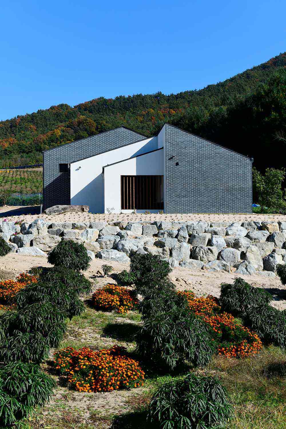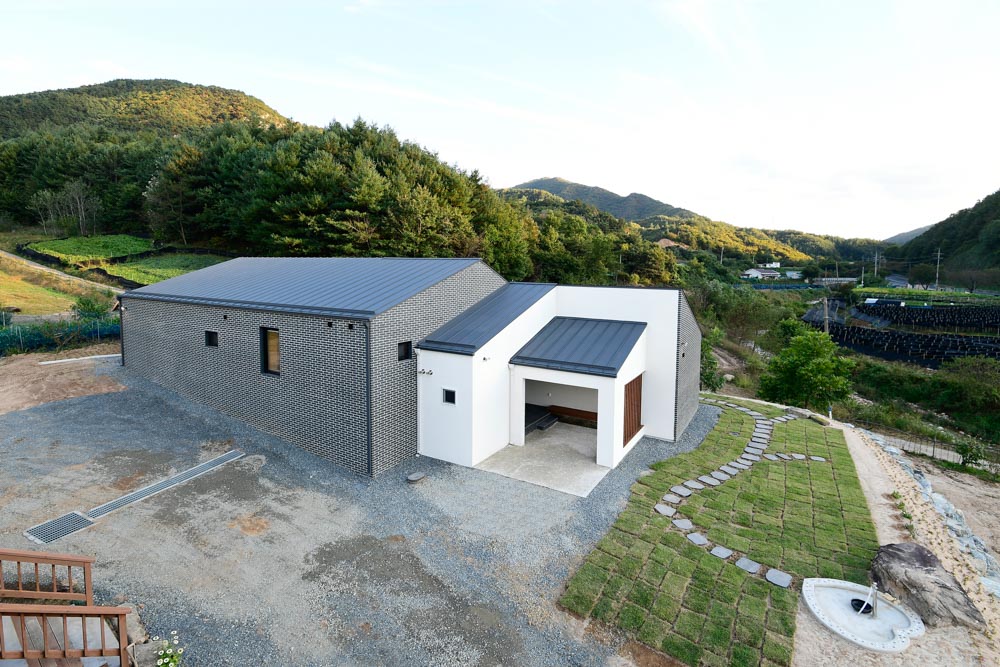 OSONDOSON-GA Client | Seo, Changgill Supervisor | Seo, Kyounghwa _ Flying Architecture Construction | KS HOUSING Project team | Jo, Jonghwa Location | 214-14, Geumsan-ro, Namil-myeon, Geumsan-gun, Chungcheongnam-do, Korea Program | House Site area | 705.40㎡ Building area | 153.81㎡ Gross floor area | 146.39㎡ Building to land ratio | 21.80% Floor area ratio | 20.75% Building scope | 2F Structure | Light-frame wood structure Exterior finishing | Brick, Stucco flex Interior finishing | Wallpaper Design period | 2018. 01 ~ 2018. 06 Construction period | 2018. 06 ~ 2018. 10 Photograph | Yoo, Geunjong Structural engineer | Doohang Structures & Consultants Co. Ltd Mechanical engineer | Codam Technical Group Electrical engineer | CNS Engineering |