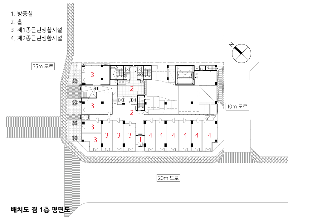 The public yard of higher-floor residential space is a wide southfacing yard that can not be found in commercial areas, and plays various roles depending on seasons. Children can play, and you can hear and watch people taking a walk. It is not an 'instrumented living space' that can be a temporary means of staying in a city, but it was designed to bring a romantic and emotional feeling to the inside. The place that was created by physically emptying the space that is included in the mall and the residence has become a dynamic space filled with various and humanistic 'people’s activities’. People who work in commercial space or those living in residential space feel richness rather than despair.